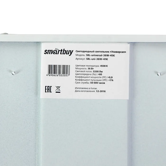 Cветодиодная панель Smartbuy, универсальная, 36 Вт, 4500К, 595×595×19 мм, свечение нейтральное белое — Характеристики