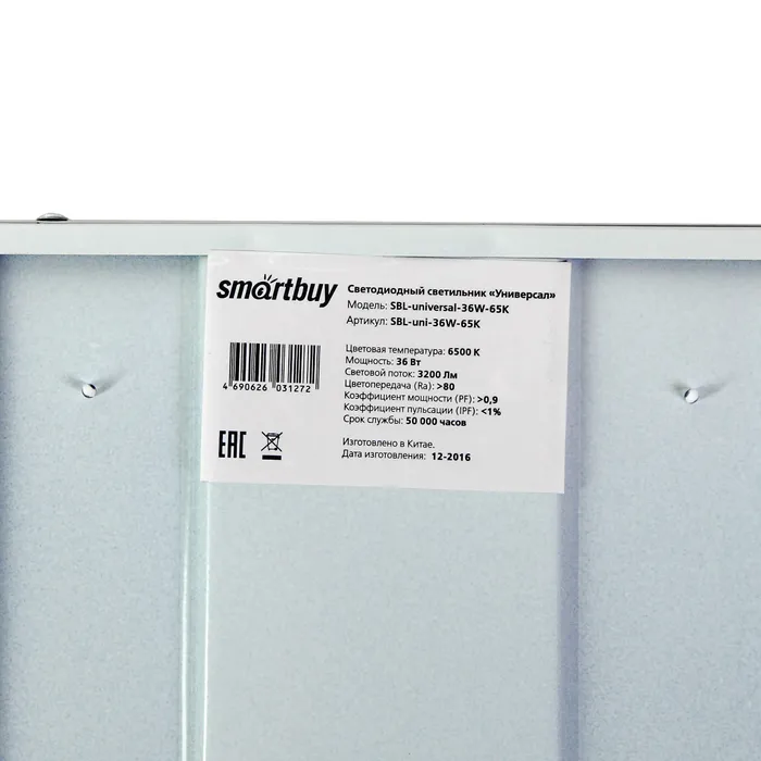 Cветодиодная панель Smartbuy, универсальная, 36 Вт, 6500К, 595×595×19 мм, свечение холодное белое — Характеристики