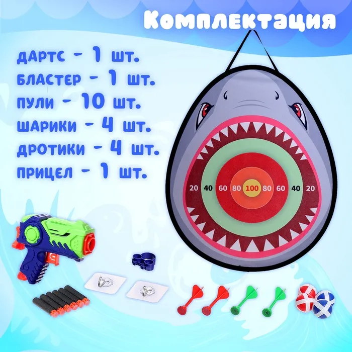 Дартс «Акула» — увлекательный и безопасный набор для метких стрелков и активных детей! Этот комплект добавит веселья в любую игру, позволяя ребёнку развивать меткость и внимание в процессе. Набор включает в себя мишень в форме акулы и разнообразные снаряды для стрельбы: мягкие пули, дротики на липучке и лёгкие мячики, которые делают его интересным и безопасным для детей от 3 лет.