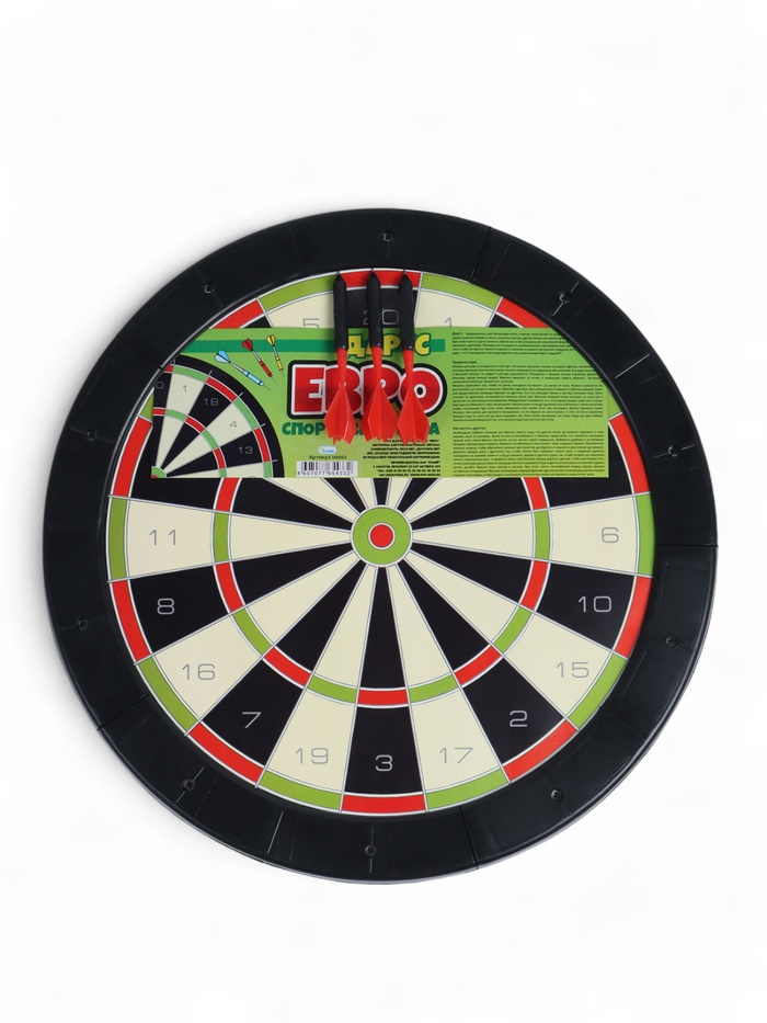 Дартс «ЕВРО», d=43 см, толщина 3 см, 2 дротика, дротик 13.5×2.5 см