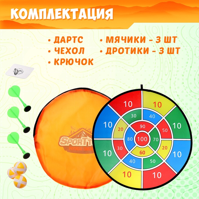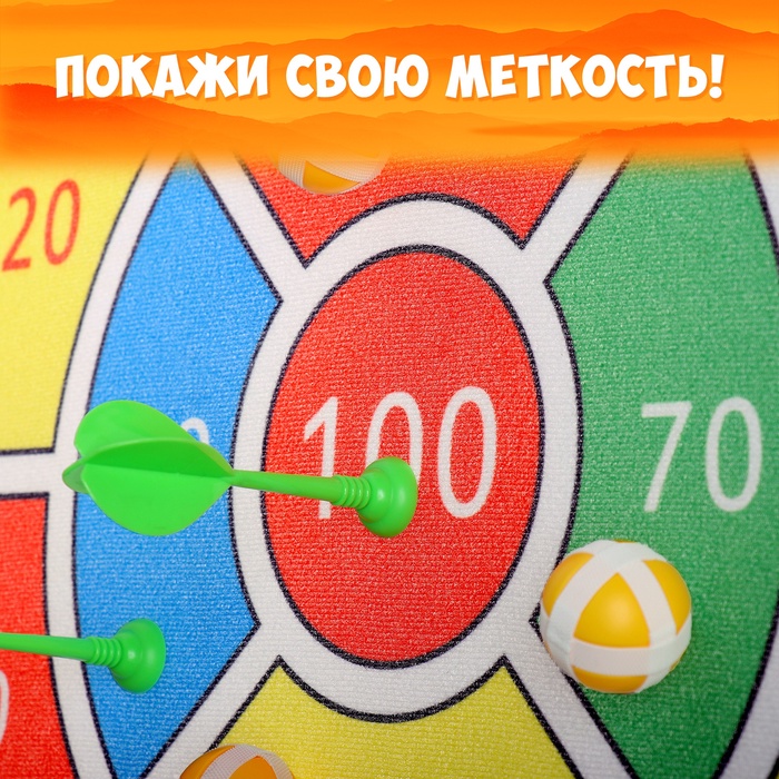 Набор состоит из яркой мишени с крупными цифрами, позволяющими легко подсчитывать очки, а также безопасных дротиков и мячиков с липучками. Даже самые маленькие участники смогут принимать участие в игре, поскольку липучки хорошо крепятся к мишени, а мягкие наконечники дротиков делают игру абсолютно безопасной.