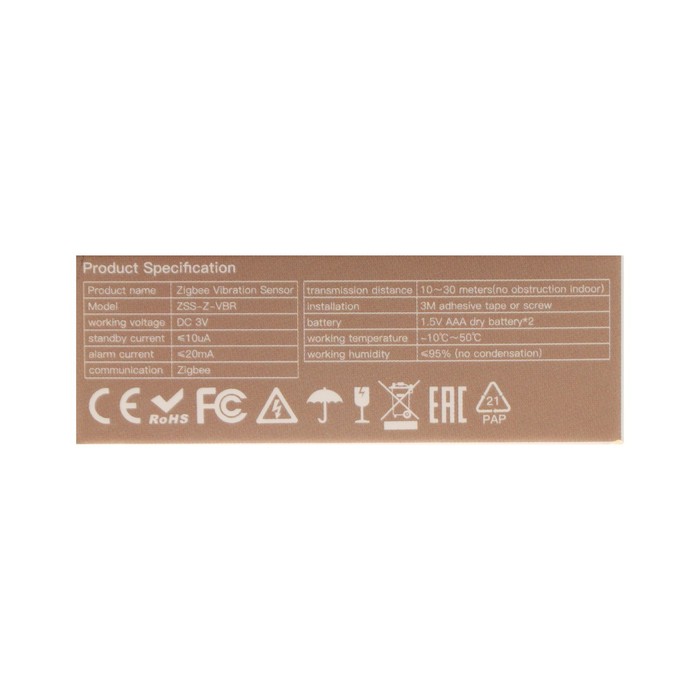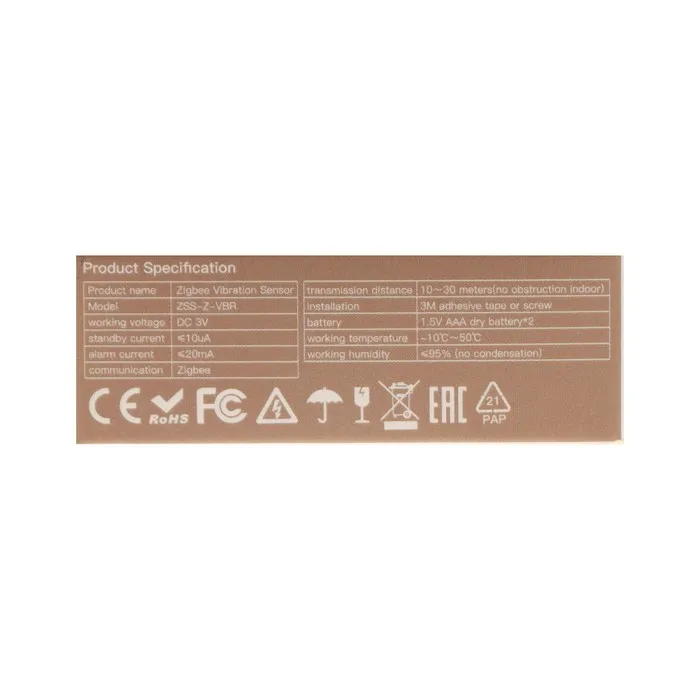 Датчик вибрации MOES ZSS-Z-VBR, Zigbee, Push-уведомления, 2хAAA — Характеристики