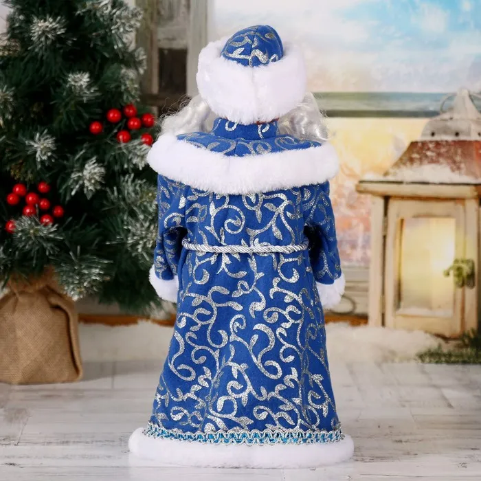 Дед Мороз под ёлку «Зимнее волшебство. Кудрявая борода», двигается, 37 см, синий — Характеристики
