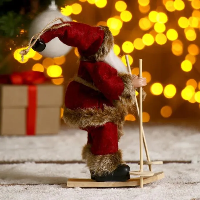 Дед Мороз под ёлку «Зимнее волшебство. На лыжах в бордовом костюме» , 17 см — Характеристики