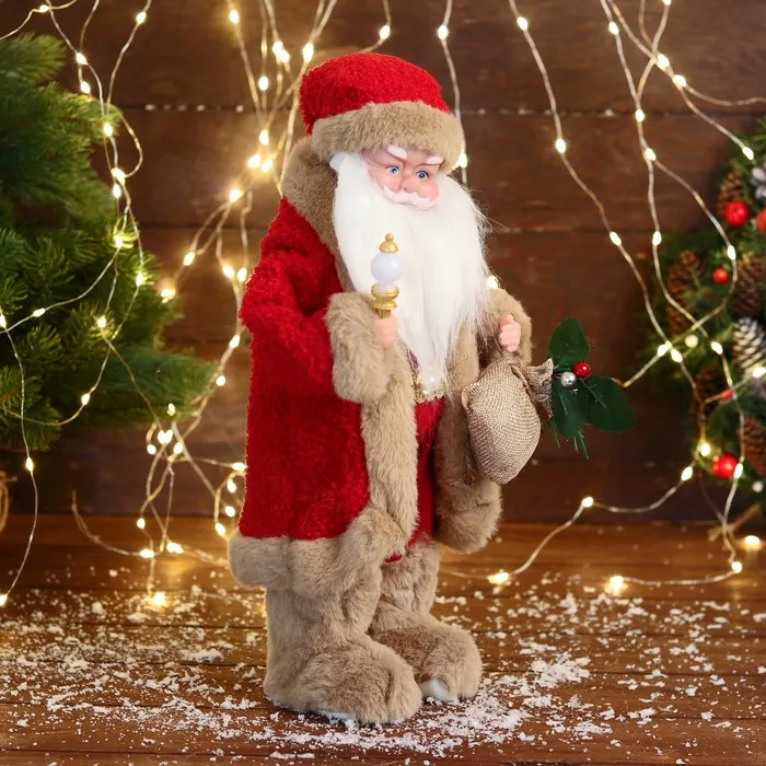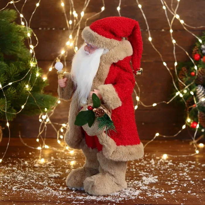 Дед Мороз под ёлку «Зимнее волшебство. Новогодняя игрушка с мехом» двигается, с подсветкой, 40 см, красный — Характеристики