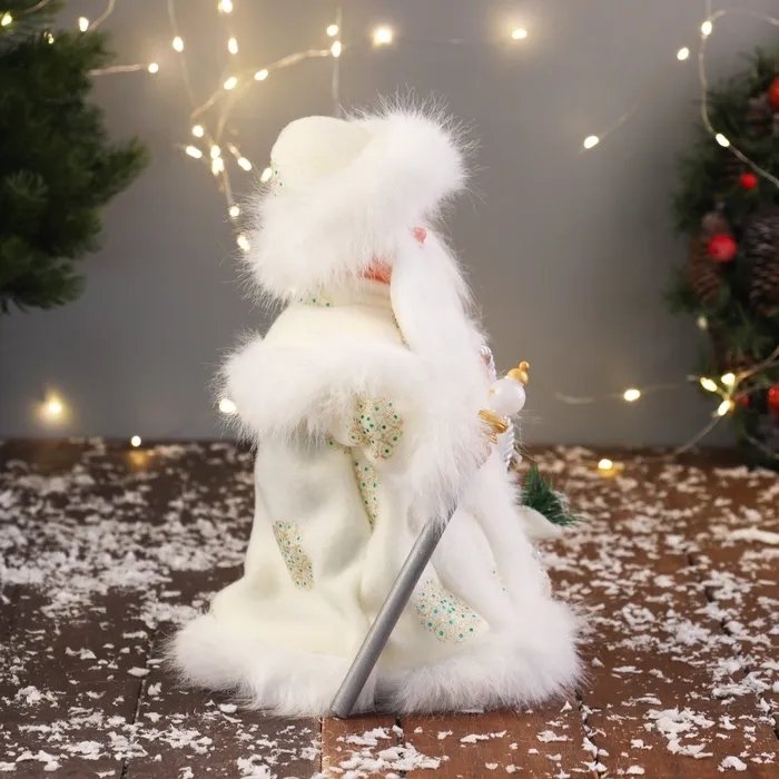 Дед Мороз под ёлку «Зимнее волшебство. Новогодняя игрушка с мешком» двигается, 30 см, белый — Характеристики