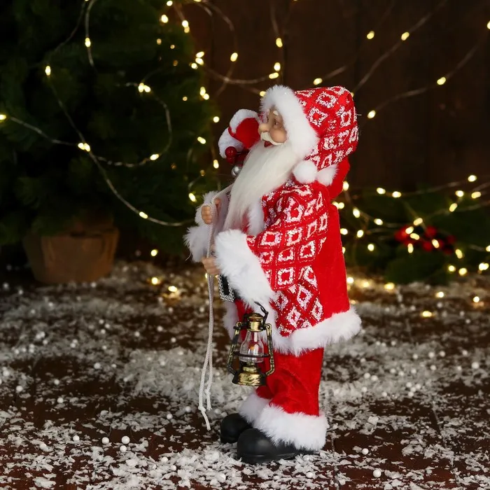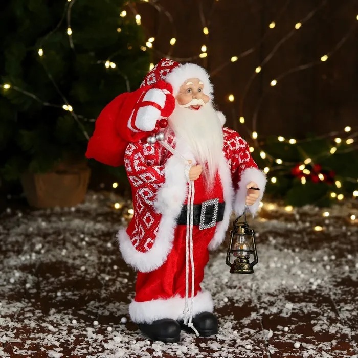 Погрузитесь в атмосферу праздника с элегантной фигурой высотой 28 см. Красный костюм с орнаментом добавляет изделию особой изысканности, создавая традиционный новогодний образ.