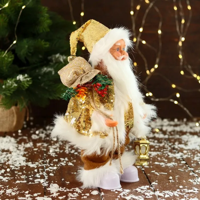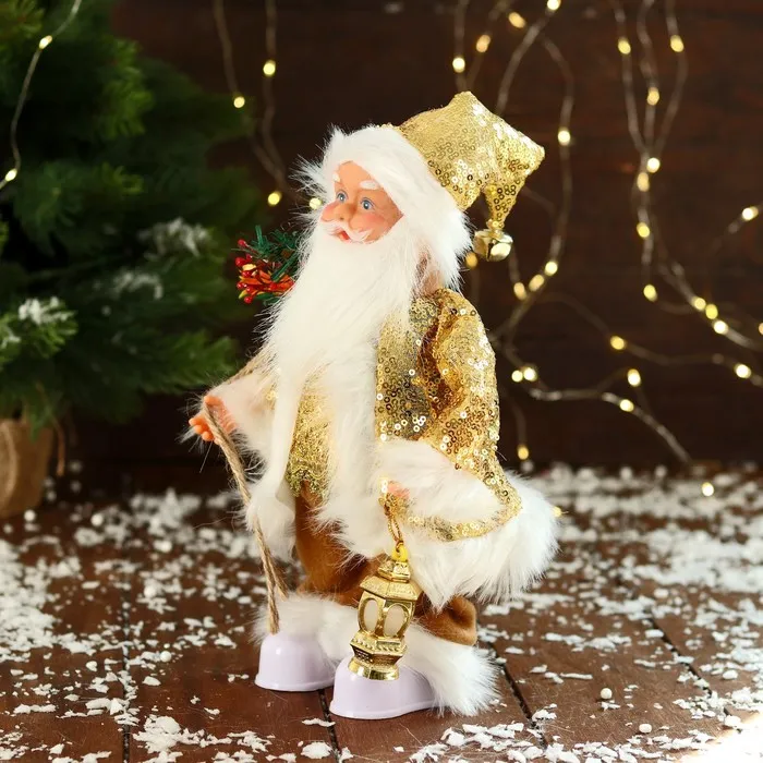 Дед Мороз под ёлку «Зимнее волшебство. Новогодняя игрушка с пайетками» двигается, с подсветкой, 28 см, золотистый — Характеристики