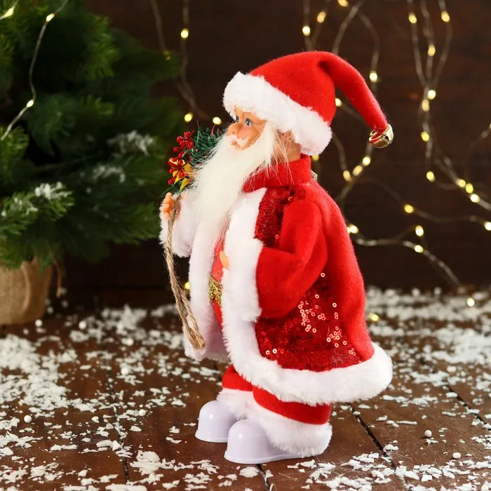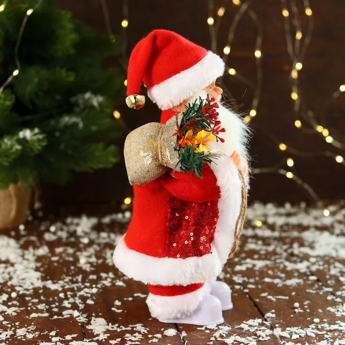 Дед Мороз под ёлку «Зимнее волшебство. Новогодняя игрушка с подарками» двигается, с подсветкой, 28 см, красный — Характеристики