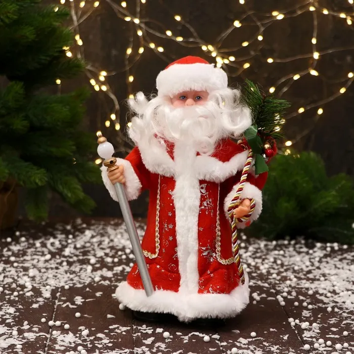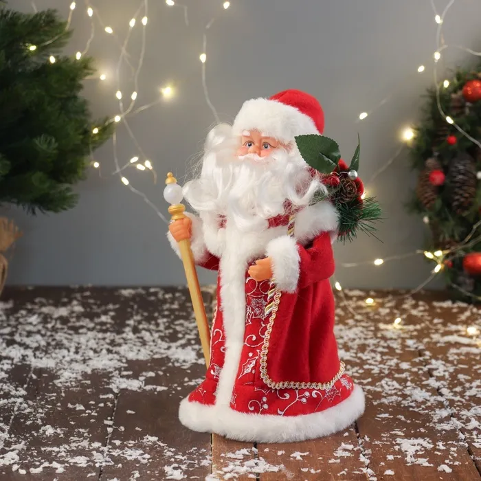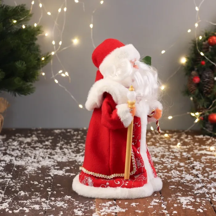 Дед Мороз в красной шубе с посохом, станет стильным акцентом Вашего новогоднего декора. Этот персонаж органично дополнит пространство под ёлкой, на полке или в фотозоне.