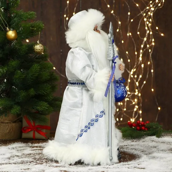 Дед Мороз под ёлку «Зимнее волшебство. Новогодняя игрушка с посохом и шариком» двигается, 45 см — Характеристики