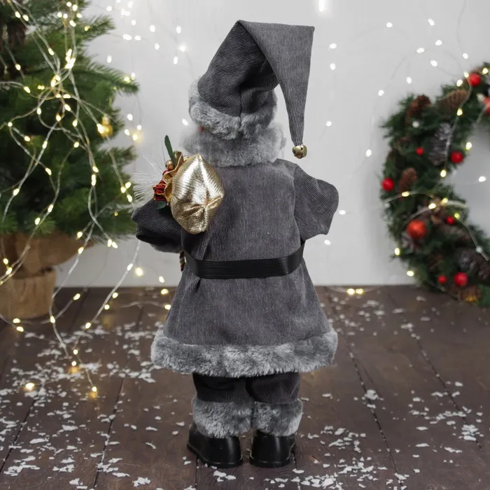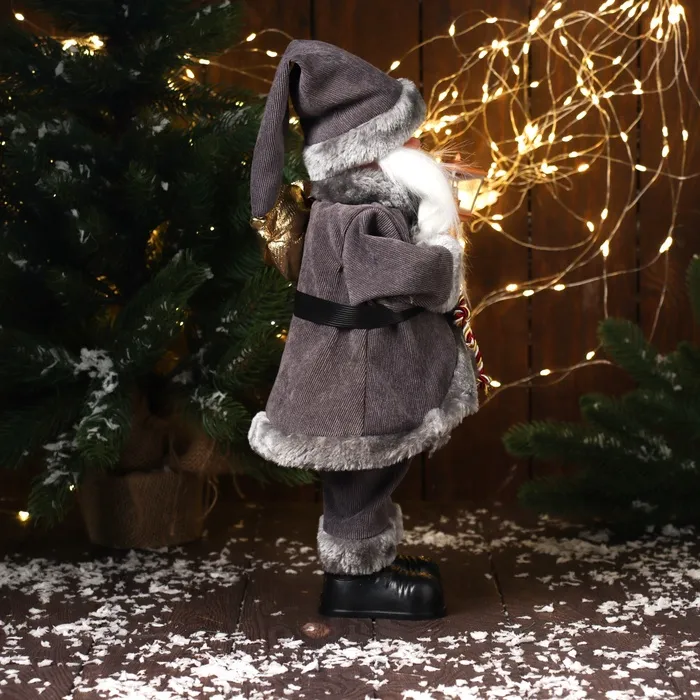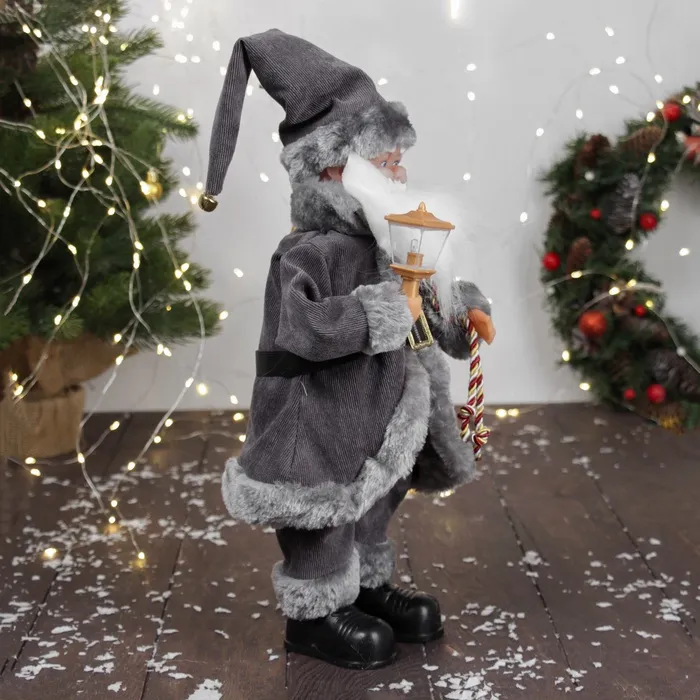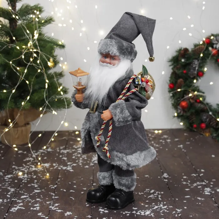 Дед Мороз под ёлку «Зимнее волшебство. Новогодняя игрушка с ремешком и с фонариком» двигается, с подсветкой, 40 см, серый — Характеристики