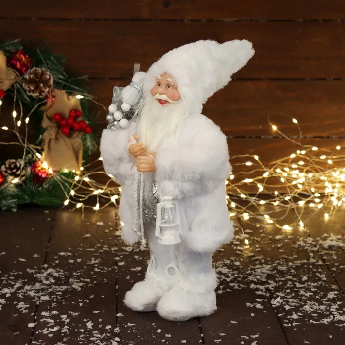 Дед Мороз под ёлку «Зимнее волшебство. Новогодняя игрушка в белой шубке», 30 см, МИКС — Характеристики