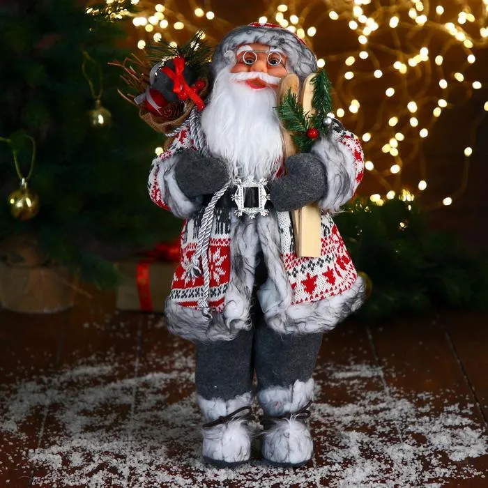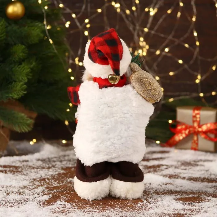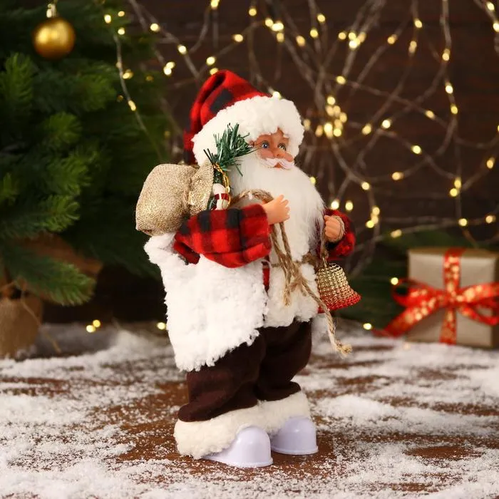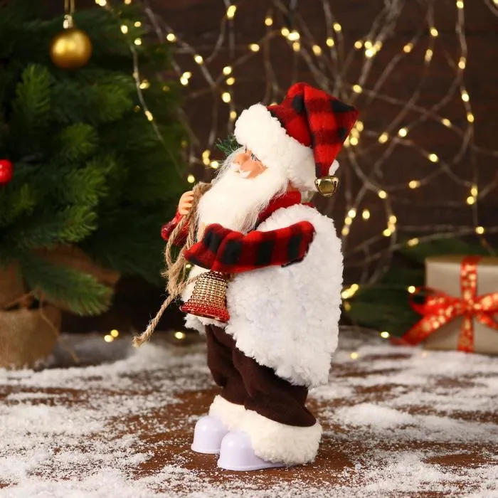 Дед Мороз под ёлку «Зимнее волшебство. Новогодняя игрушка в клетчатом тулупе» двигается, ботинки светятся, 28 см — Характеристики