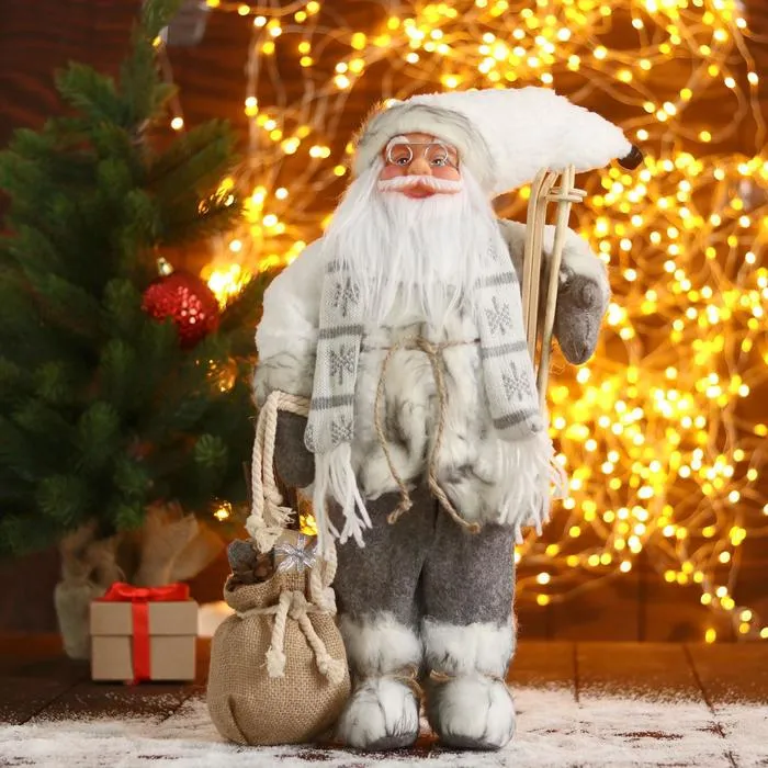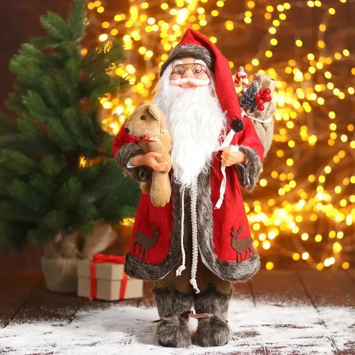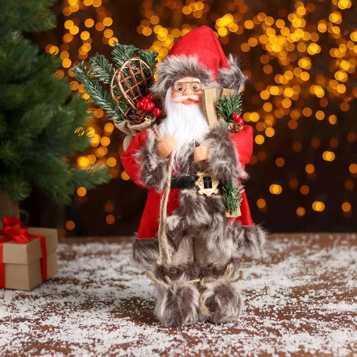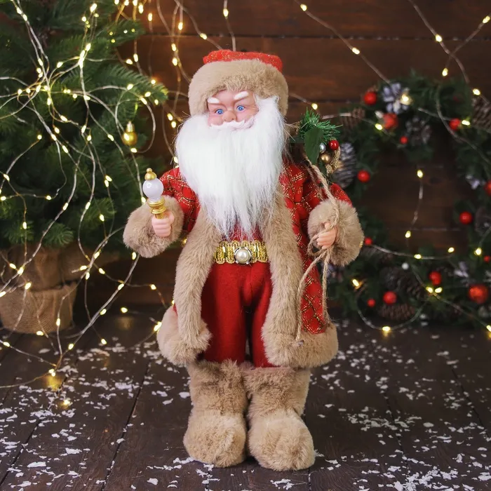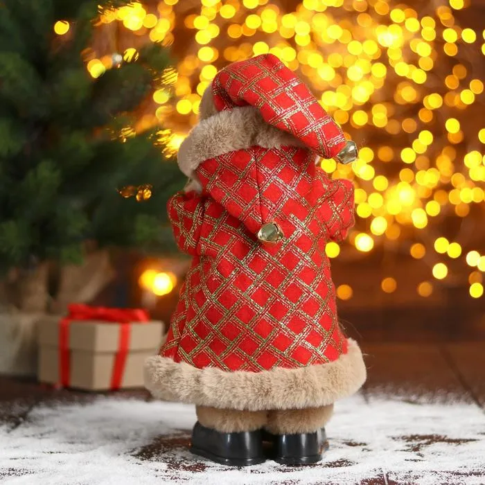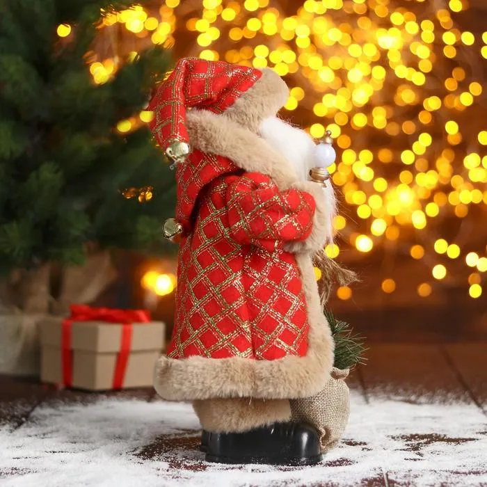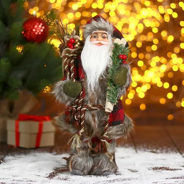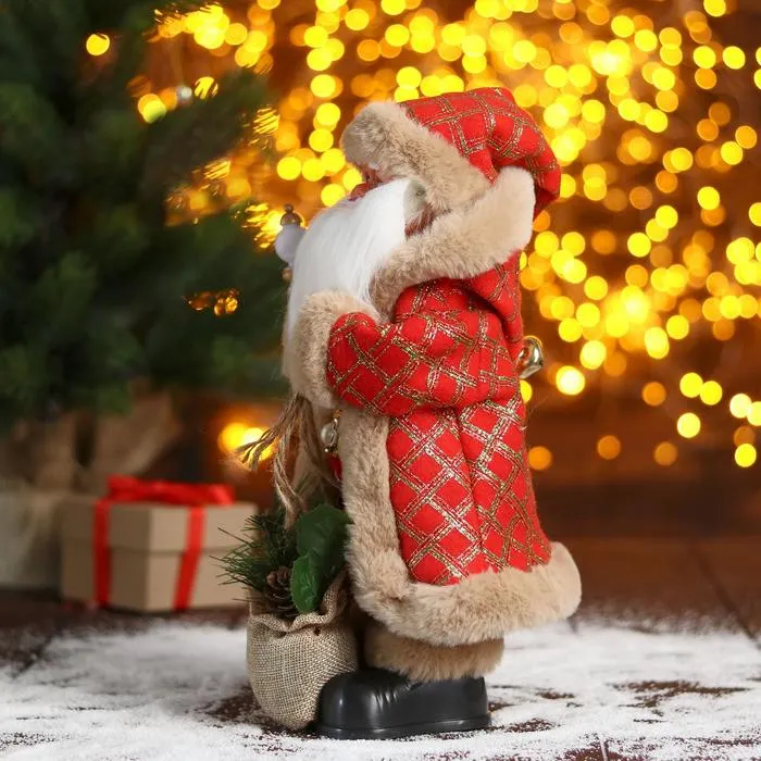 Дед Мороз под ёлку «Зимнее волшебство. Новогодняя игрушка в клетку с подарками» двигается, 30 см — Характеристики