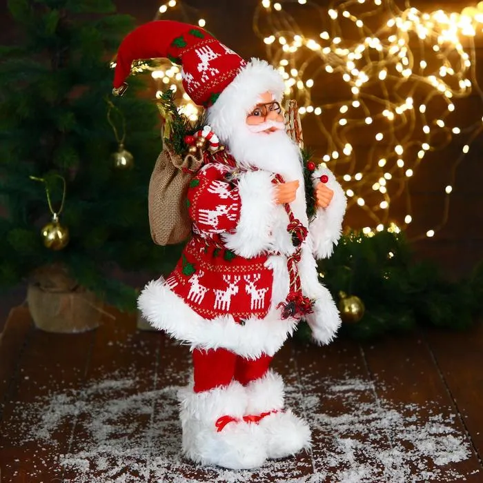 Дед Мороз в красной шубке и высотой 45 см станет замечательным элементом декора в Вашем интерьере.