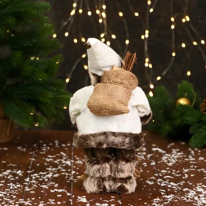 Дед Мороз под ёлку «Зимнее волшебство. Новогодняя игрушка в колпачке с фонариком» двигается, 28 см, серо-белый — Характеристики