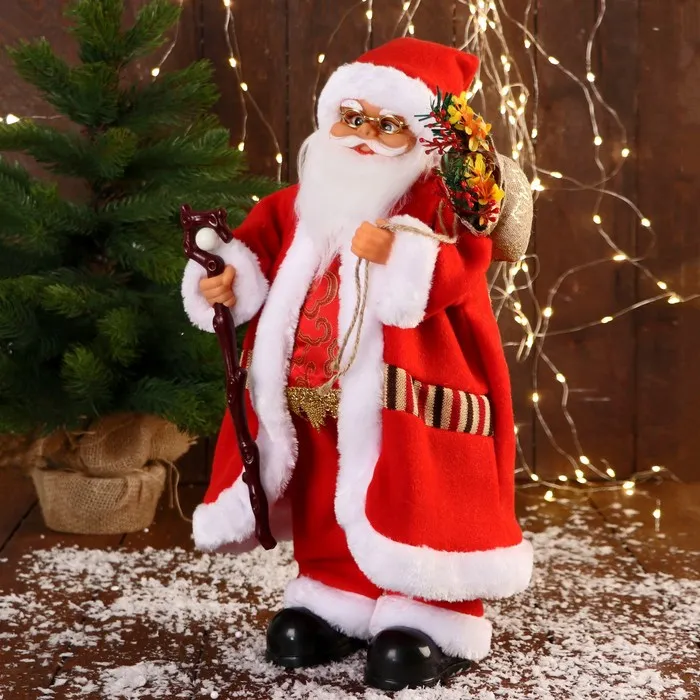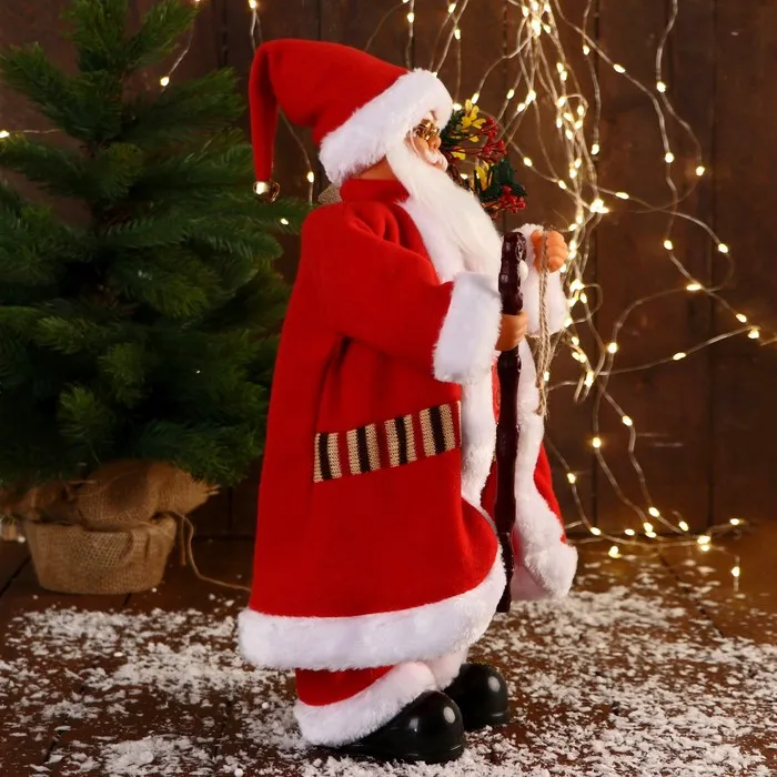 Дед Мороз под ёлку «Зимнее волшебство. Новогодняя игрушка в костюмчике с посохом» двигается, 50 см — Характеристики