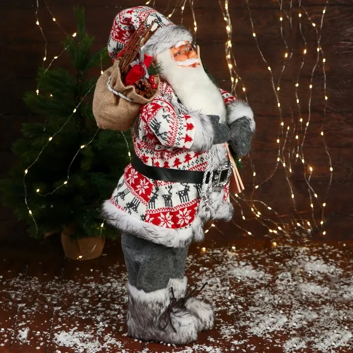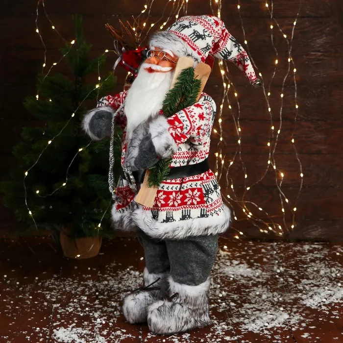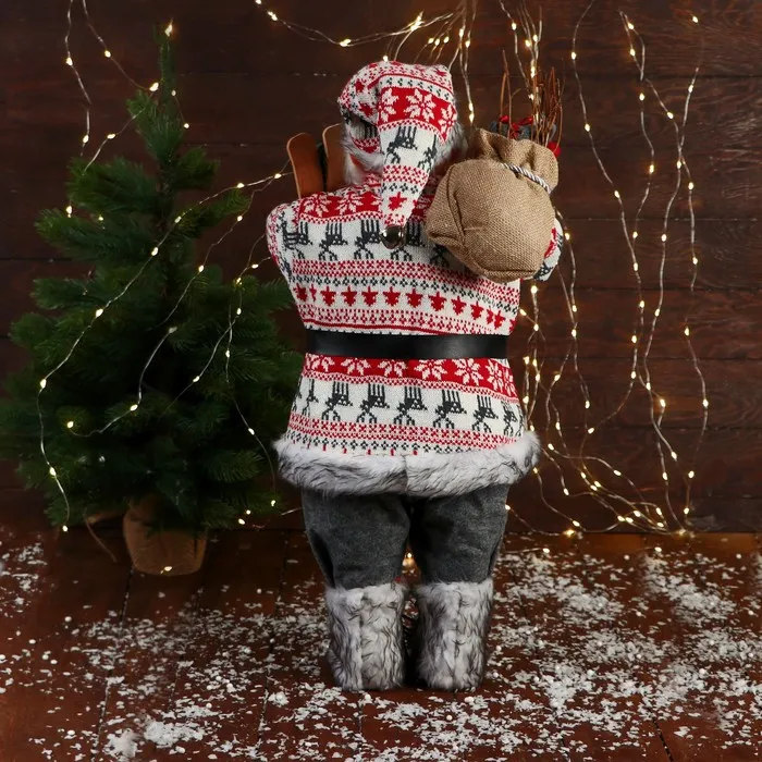 Дед Мороз под ёлку «Зимнее волшебство. Новогодняя игрушка в костюме с лыжами и веточками», 60 см, красно-белый — Характеристики