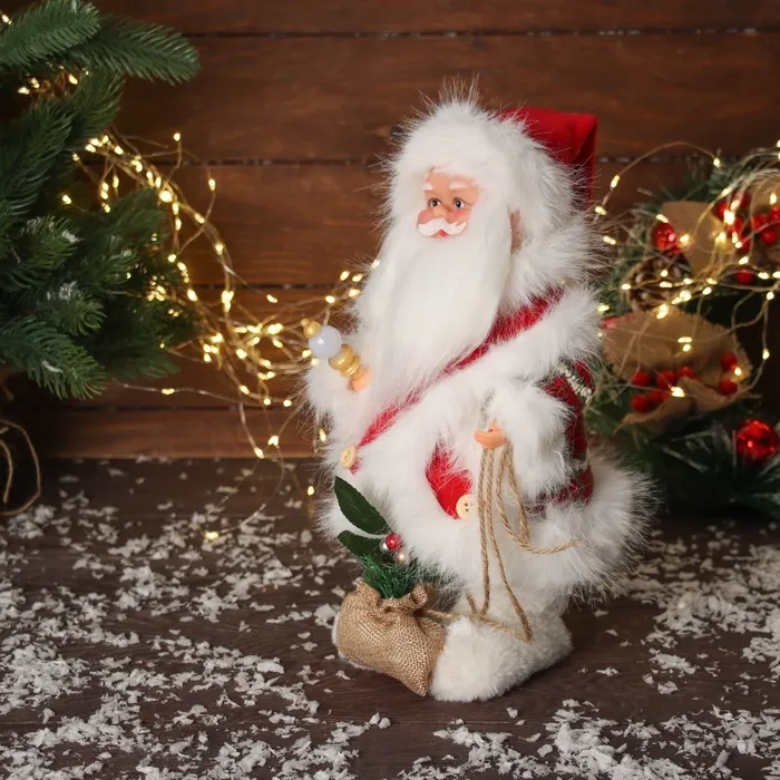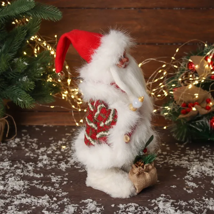 Дед Мороз под ёлку «Зимнее волшебство. Новогодняя игрушка в костюме с мешком» двигается, с подсветкой, 30 см, красный — Характеристики