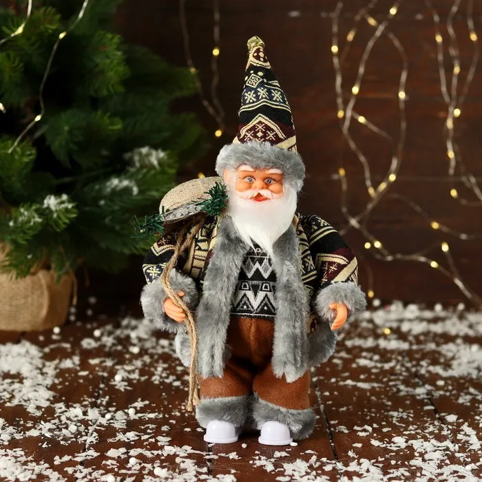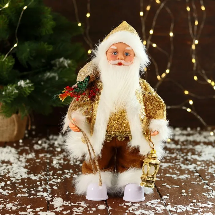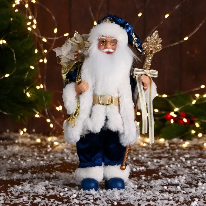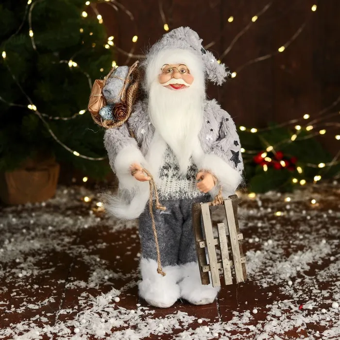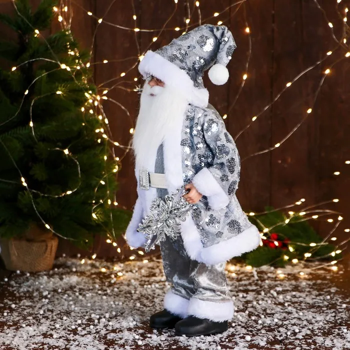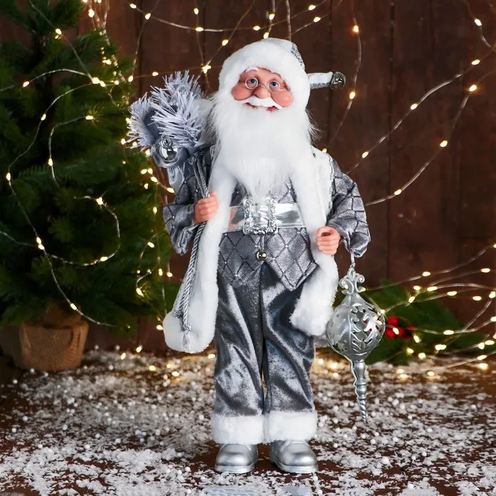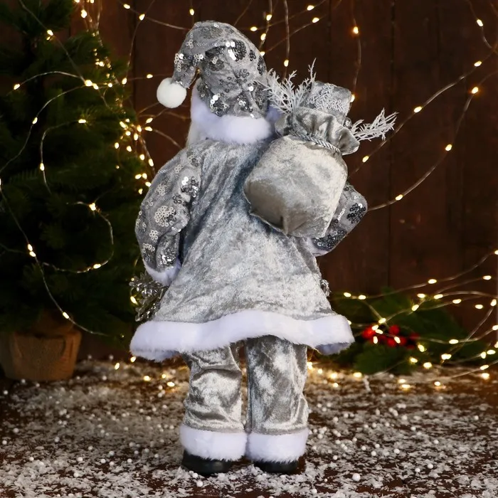 Дед Мороз под ёлку «Зимнее волшебство. Новогодняя игрушка в костюме с пайетками и с подарками», 43 см, серебристый — Характеристики