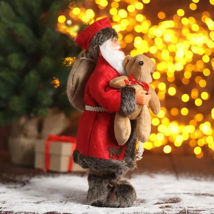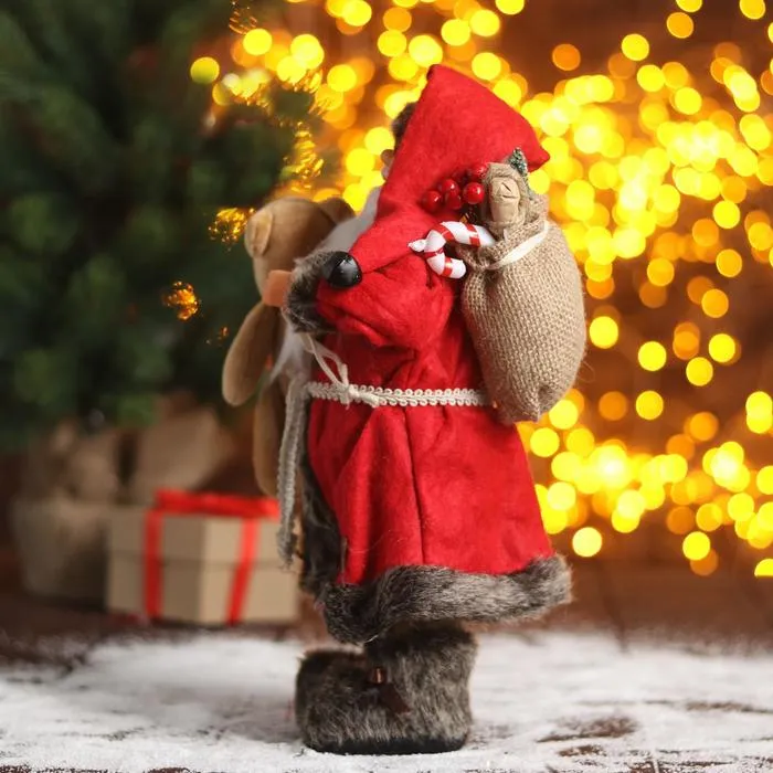 Дед Мороз под ёлку «Зимнее волшебство. Новогодняя игрушка в красной шубке с мишкой», 30 см — Характеристики