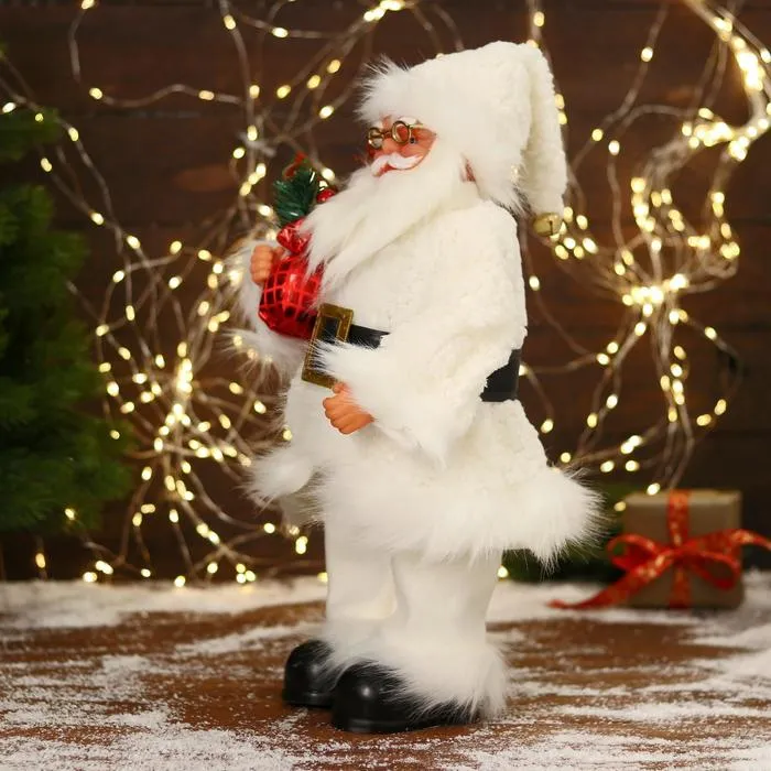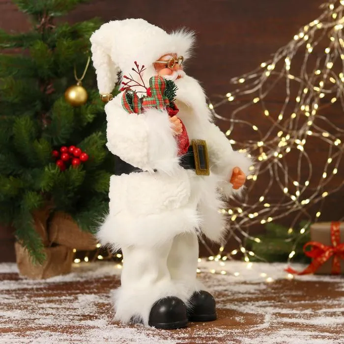 Дед Мороз под ёлку «Зимнее волшебство. Новогодняя игрушка в меховом костюмчике» двигается, 40 см — Характеристики
