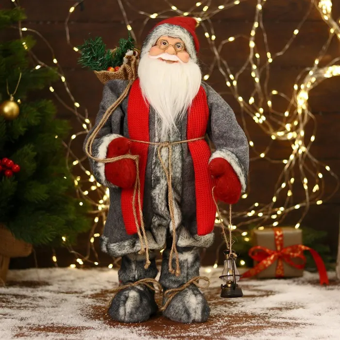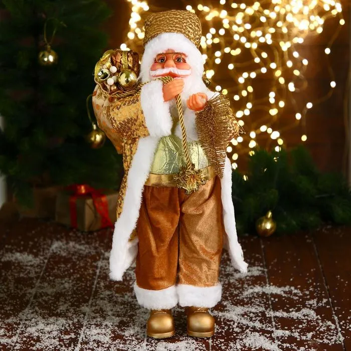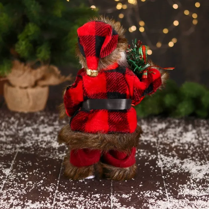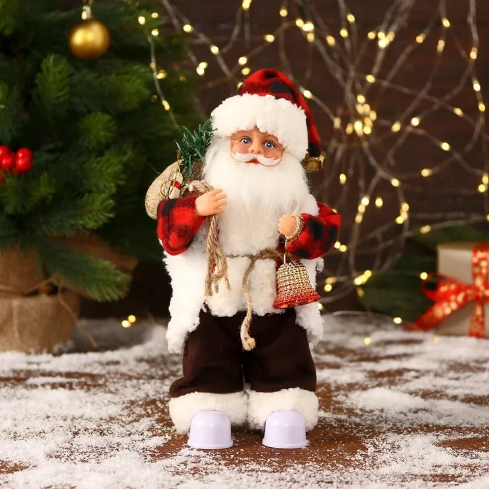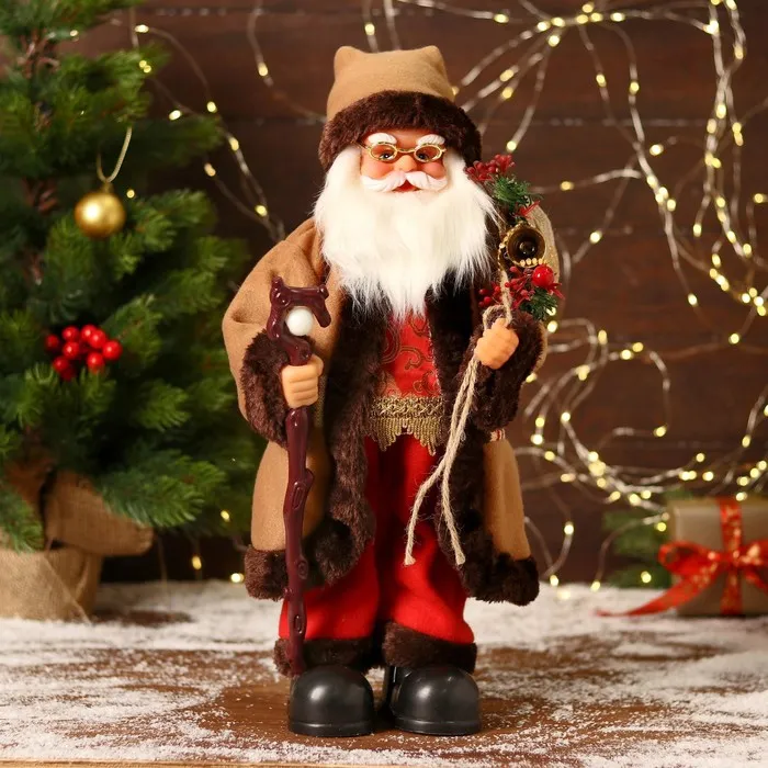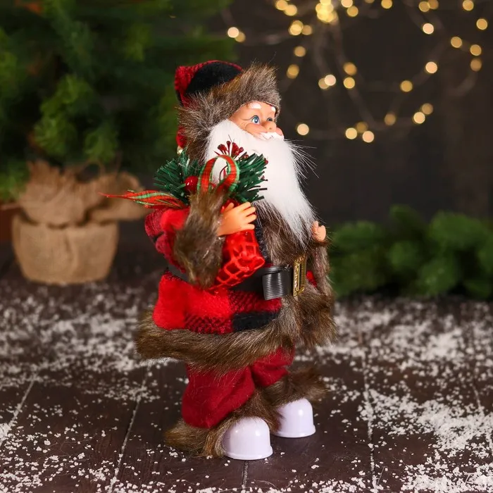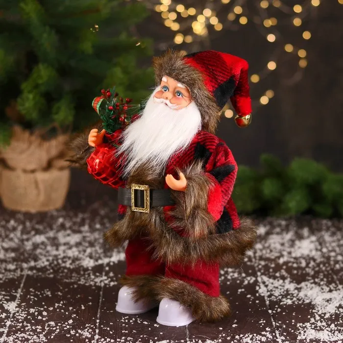 Дед Мороз под ёлку «Зимнее волшебство. Новогодняя игрушка в меховом красном костюмчике» двигается, 30 см — Характеристики