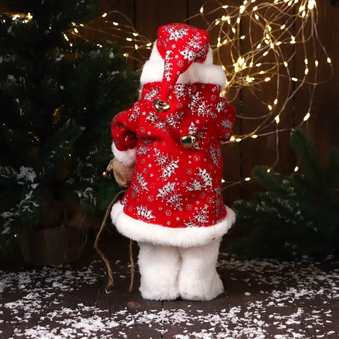 Дед Мороз в красной шубе с подарками станет отличным акцентом вашего новогоднего декора. Этот персонаж не только украсит пространство под ёлкой, но и оживит интерьер благодаря плавным движениям.