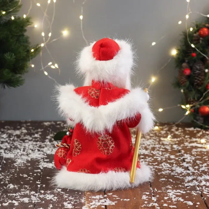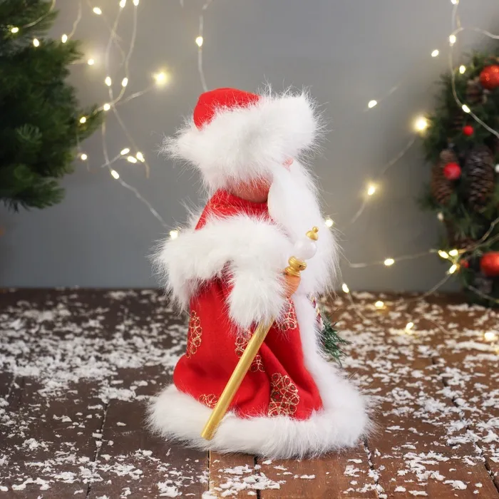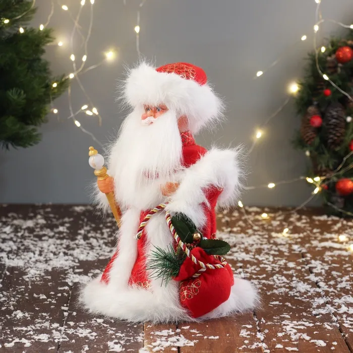 Дед Мороз под ёлку «Зимнее волшебство. Новогодняя игрушка в шубе, с мешком» двигается, 30 см, красный — Характеристики
