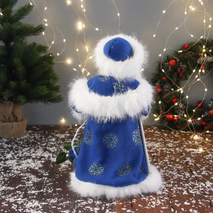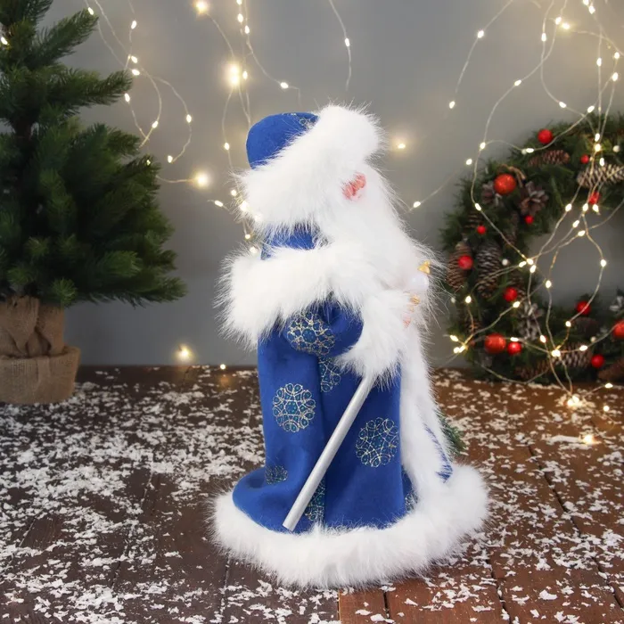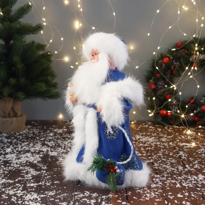 Дед Мороз под ёлку «Зимнее волшебство. Новогодняя игрушка в шубе, с мешком» двигается, 40 см, синий — Характеристики