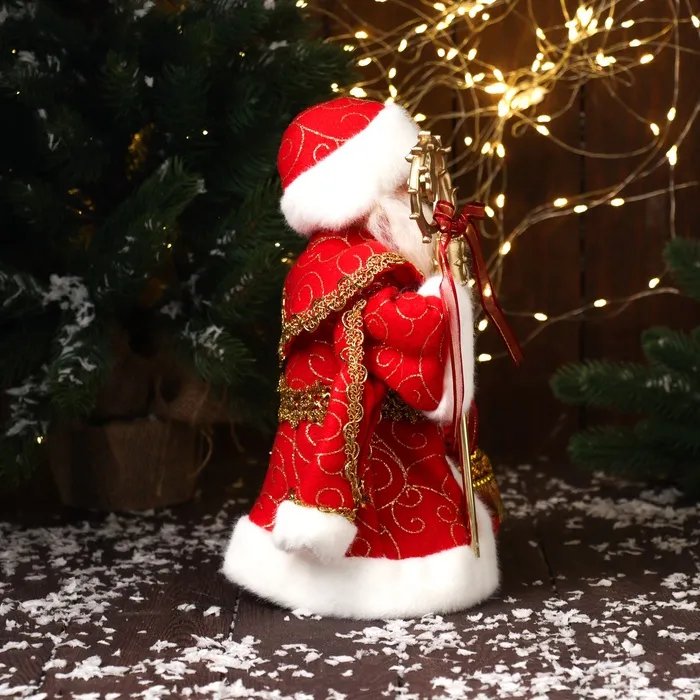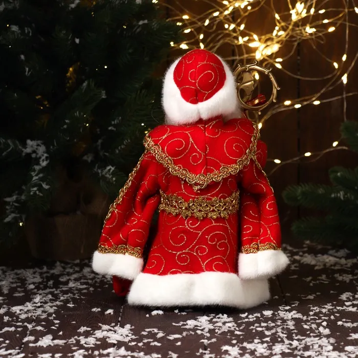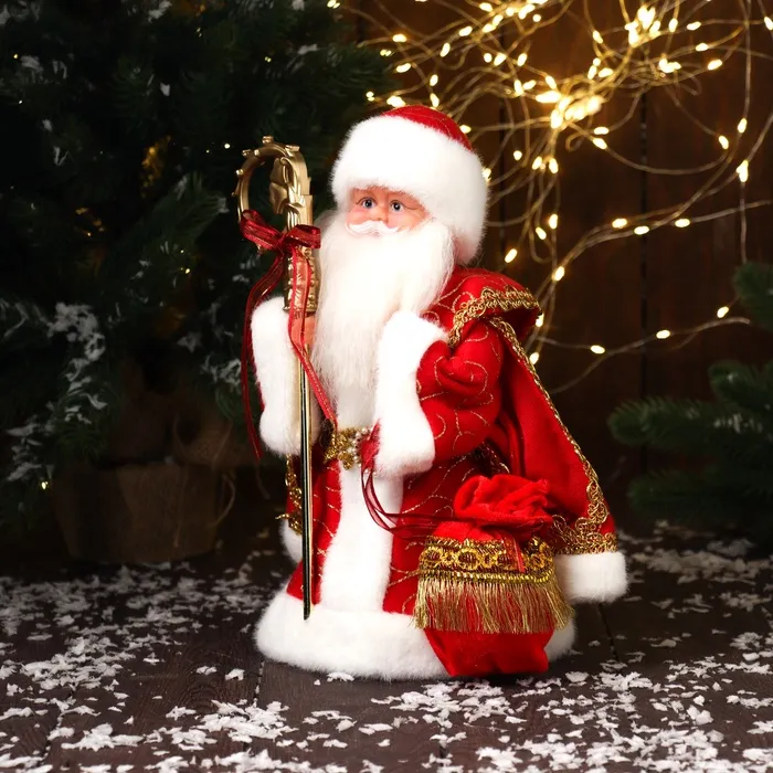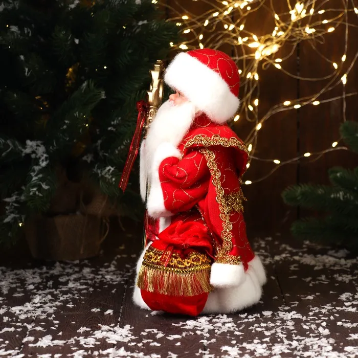 Дед Мороз под ёлку «Зимнее волшебство. Новогодняя игрушка в шубе с мешком нашивкой» двигается, 30 см, красный — Характеристики