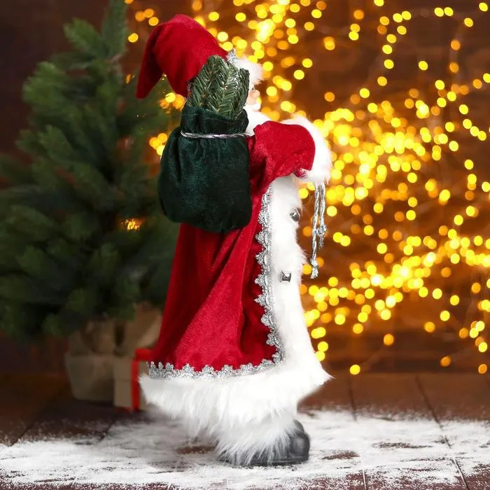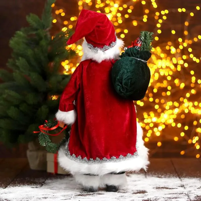 Дед Мороз в красной шубке с новогодним венком, 45 см станет стильным акцентом вашего праздничного декора. Этот персонаж органично дополнит пространство под ёлкой, на полке или в фотозоне.