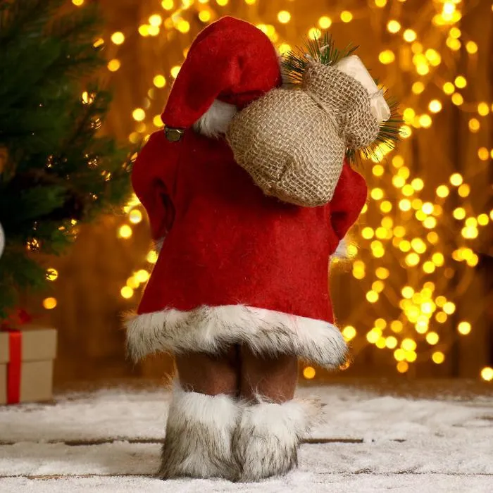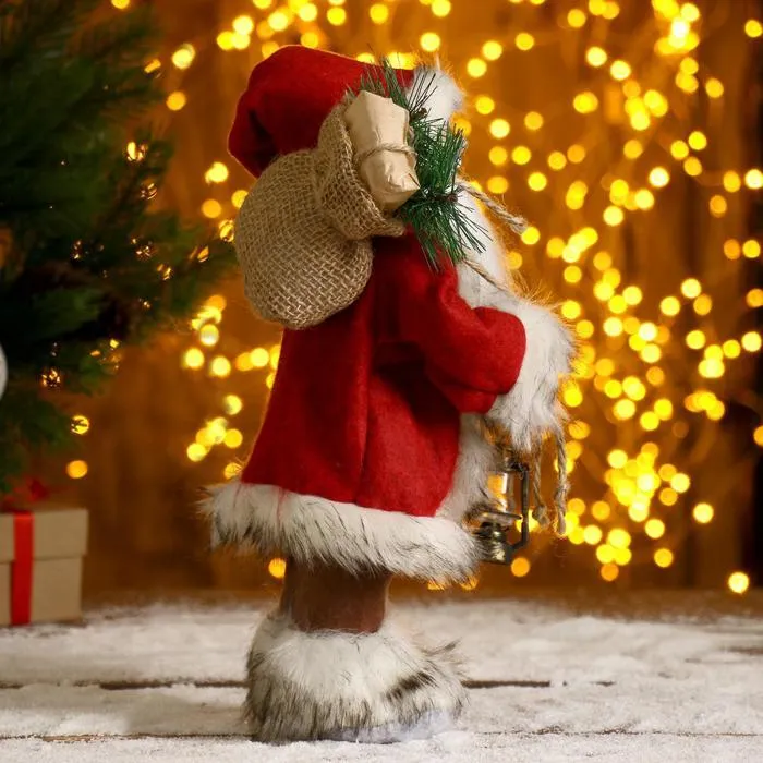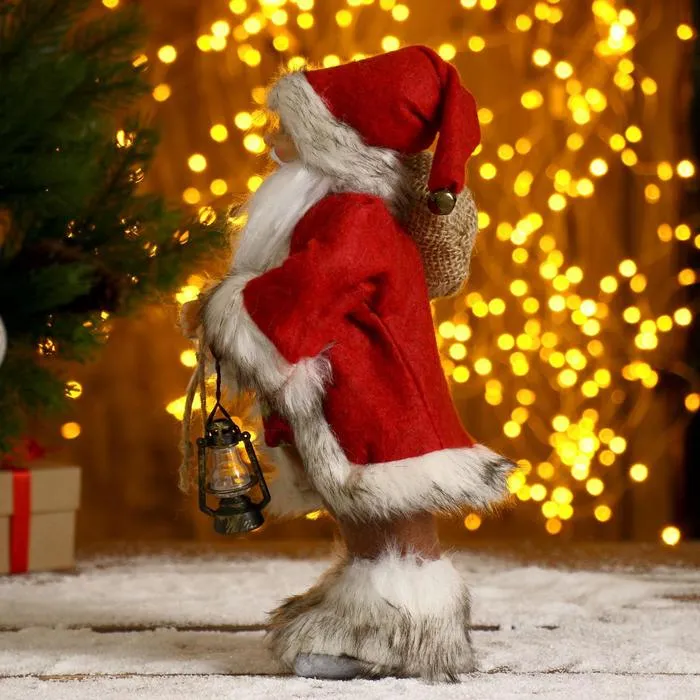 Дед Мороз под ёлку «Зимнее волшебство. Новогодняя игрушка в шубке, с фонариком и мешочком», 30 см — Характеристики