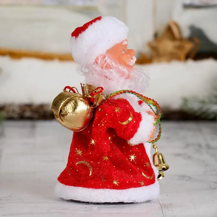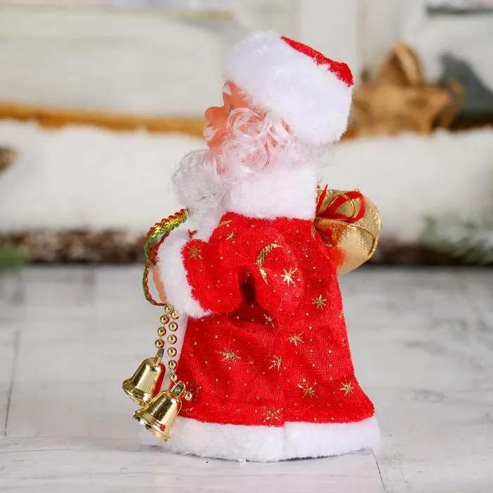 Дед Мороз под ёлку «Зимнее волшебство. Новогодняя игрушка в шубке, с колокольчиком» с подсветкой, двигается, 27 см — Характеристики
