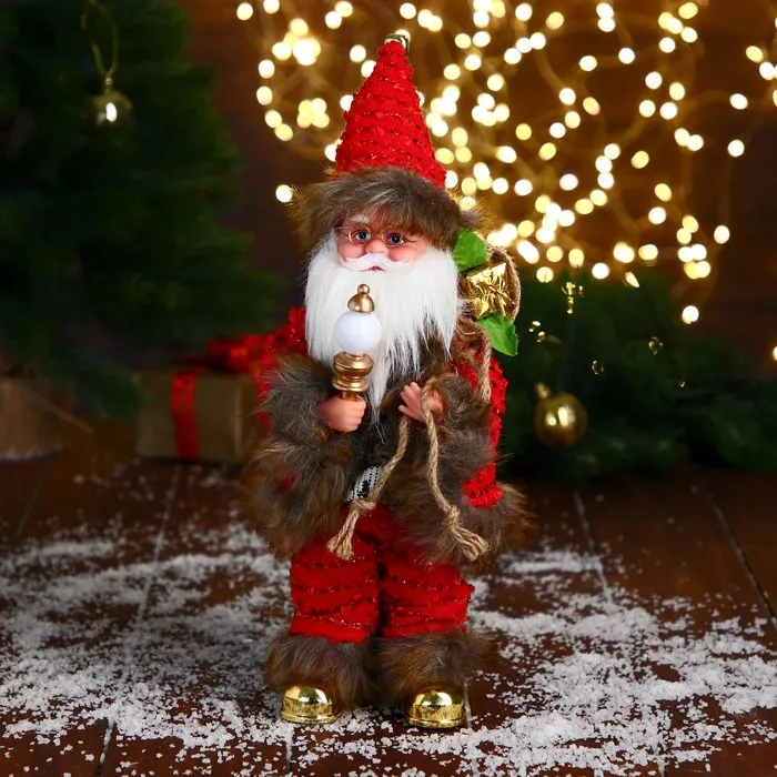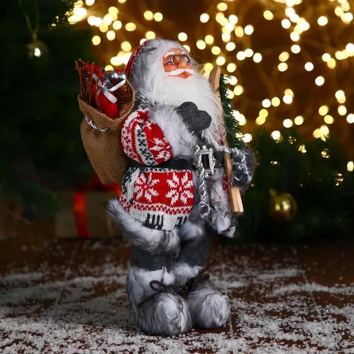 Фигурка «Дед Мороз с лыжами» станет стильным украшением новогоднего интерьера и создаст атмосферу праздника. Эта композиция высотой 30 см органично дополнит декор под ёлкой, на полке или в фотозоне. Классический образ Деда Мороза гармонично сочетается с различными стилями — от новогоднего барокко до скандинавского минимализма.