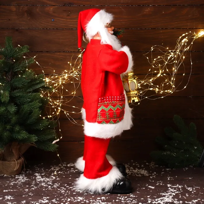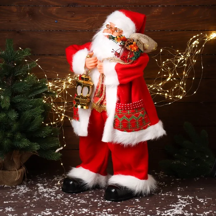 Дед Мороз под ёлку «Зимнее волшебство. Новогодняя игрушка в шубке, в очках, с фонариком», двигается, с подсветкой, 70 см — Характеристики