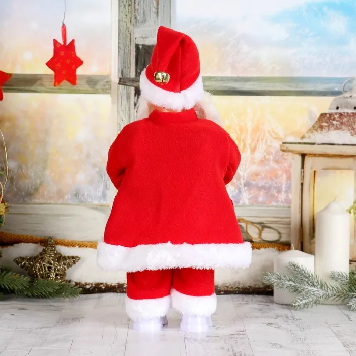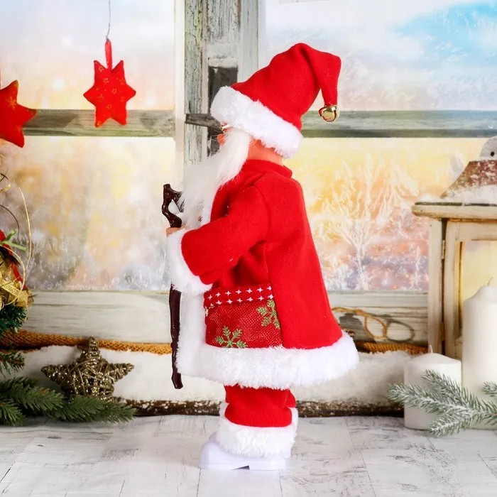 Дед Мороз под ёлку «Зимнее волшебство. Новогодняя игрушка в шубке, в очках, в валенках» двигается, с подсветкой, 36 см — Характеристики