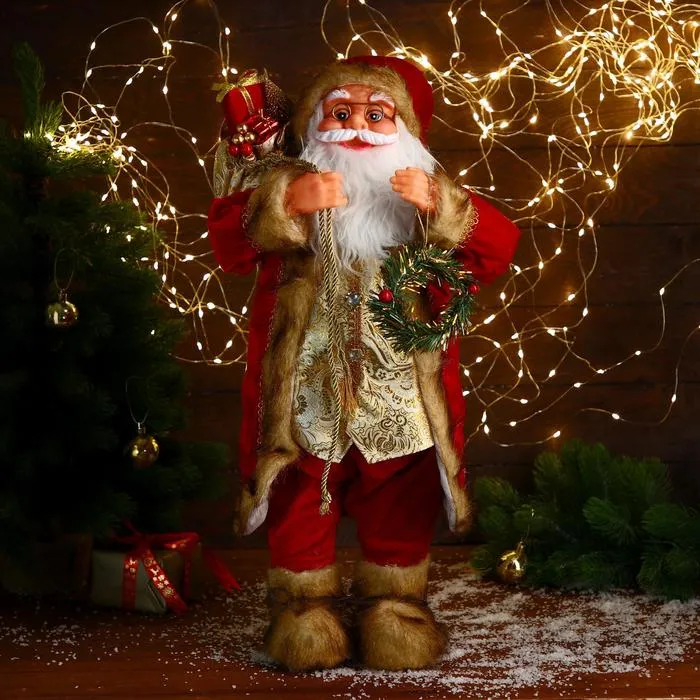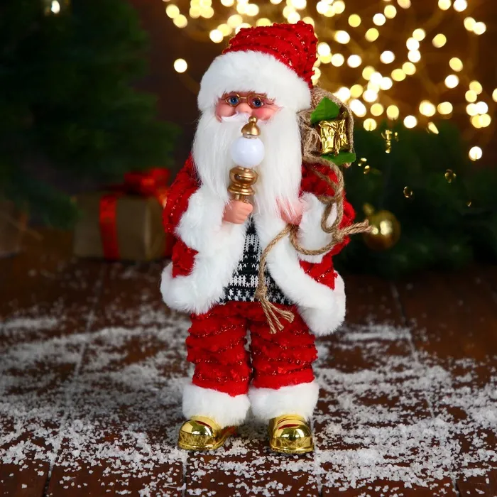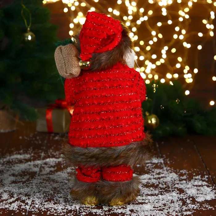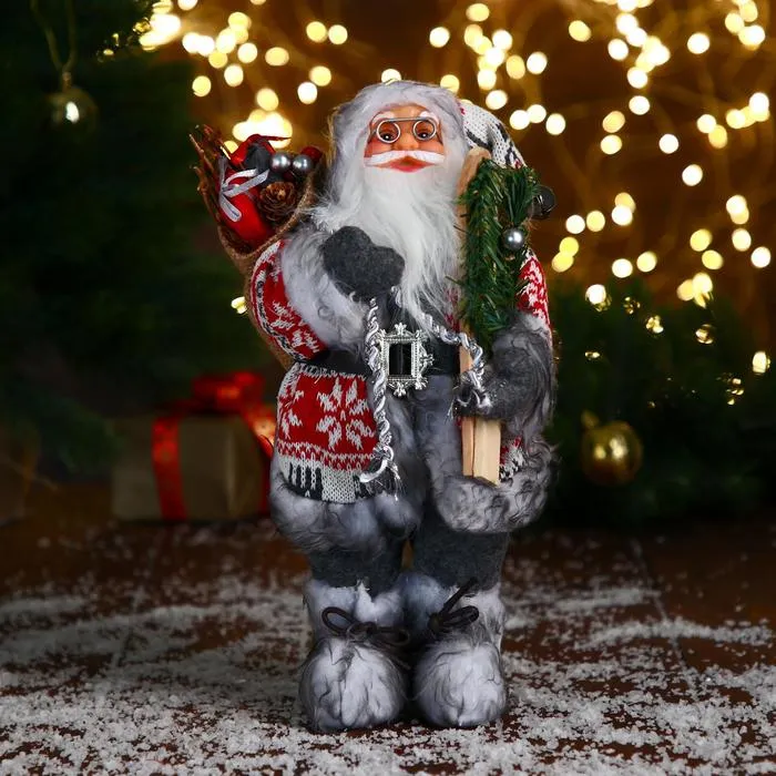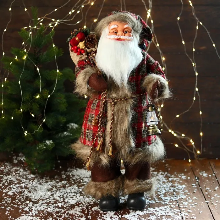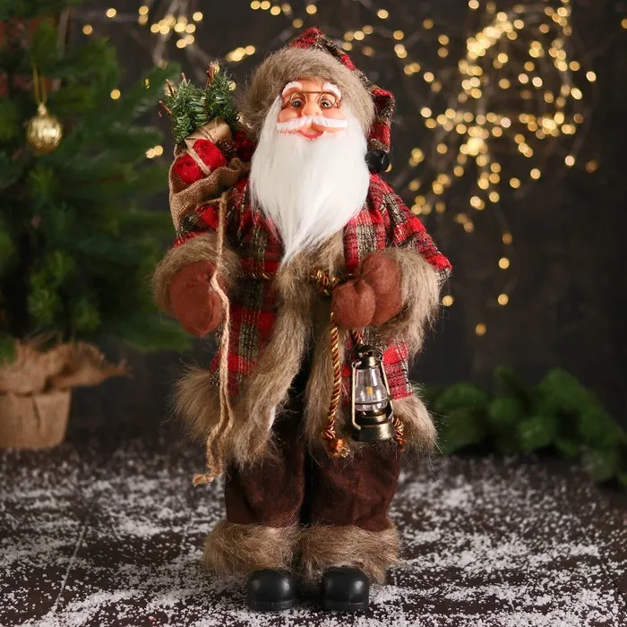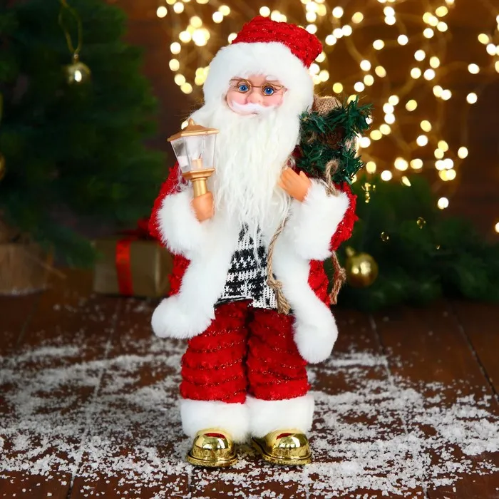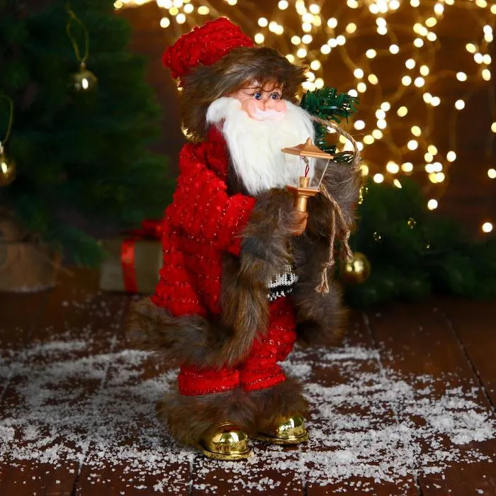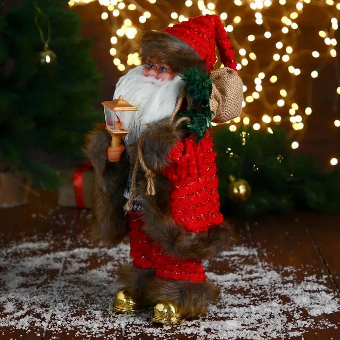 Дед Мороз под ёлку «Зимнее волшебство. Новогодняя игрушка в свитере и шубке» двигается, фонарь светится, 35 см — Характеристики