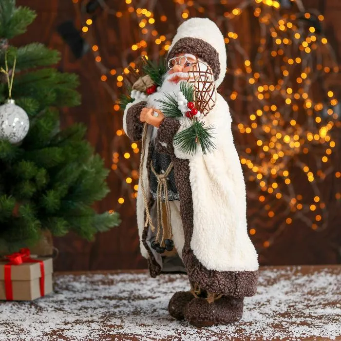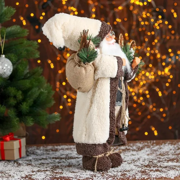 Добавьте в интерьер зимнюю магию! «Дед Мороз в белом тулупе со снегоступами, 45 см» станет потрясающим акцентом вашего новогоднего декора. Этот персонаж органично дополнит пространство под ёлкой, на каминной полке или в фотозоне.
