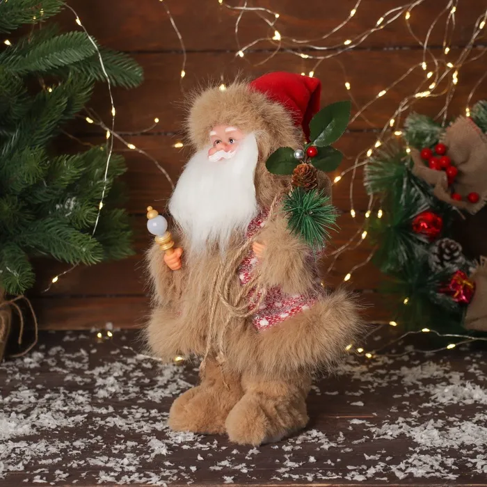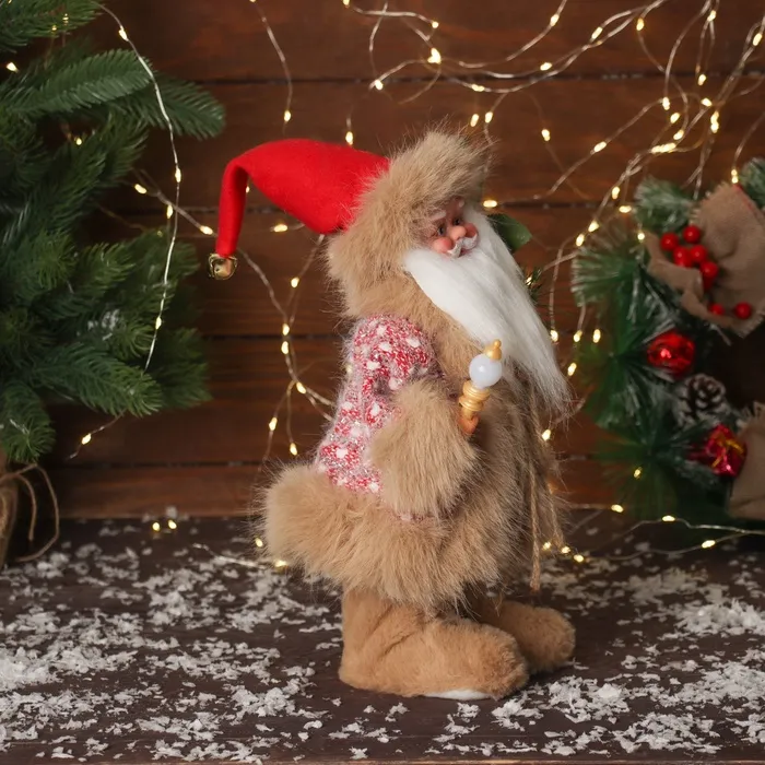 Дед Мороз под ёлку «Зимнее волшебство. Новогодняя игрушка в вязаном костюме» двигается, с подсветкой, 30 см, красный — Характеристики