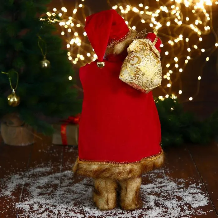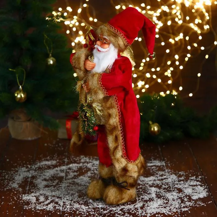 Дед Мороз под ёлку «Зимнее волшебство. Новогодняя игрушка в золотом кафтане, с венком», 45 см — Характеристики