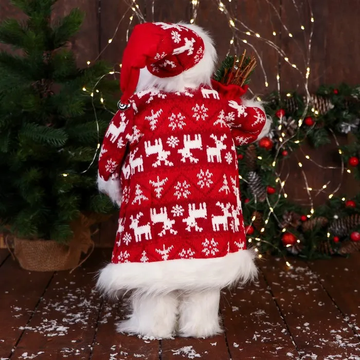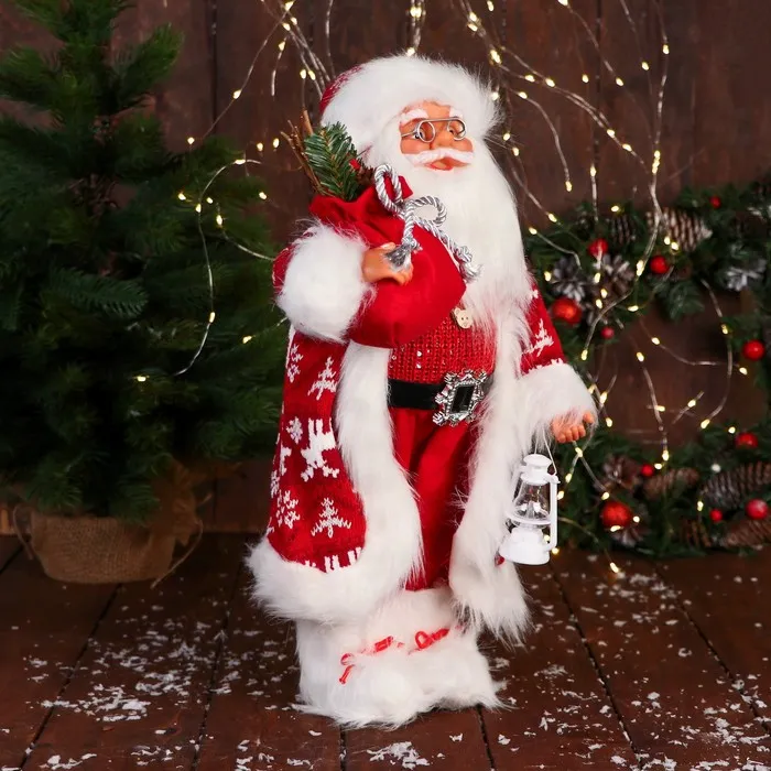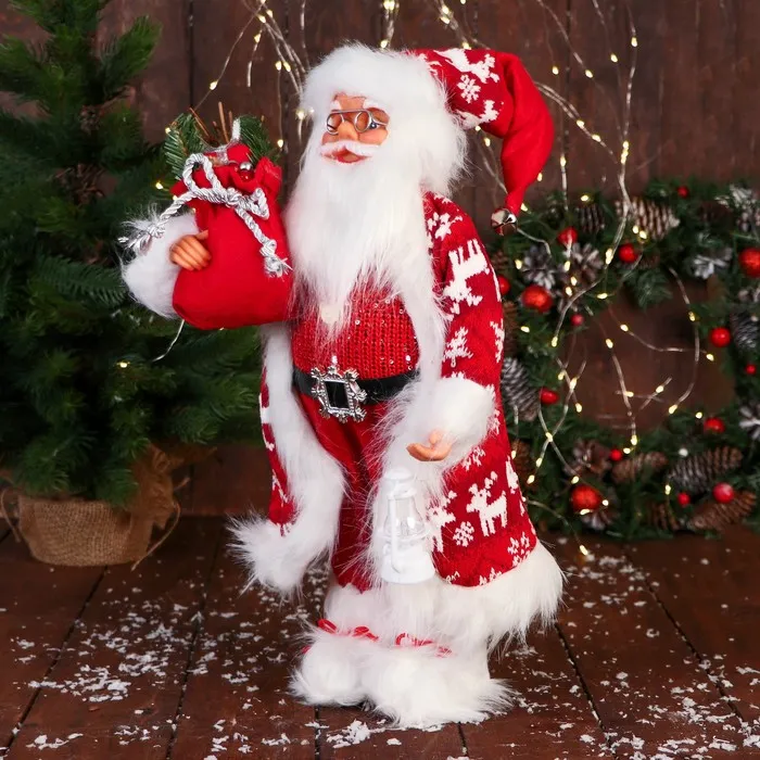 Дед Мороз под ёлку «Зимнее волшебство. С фонариком и охапкой подарков», 50 см, красный — Характеристики