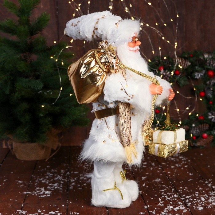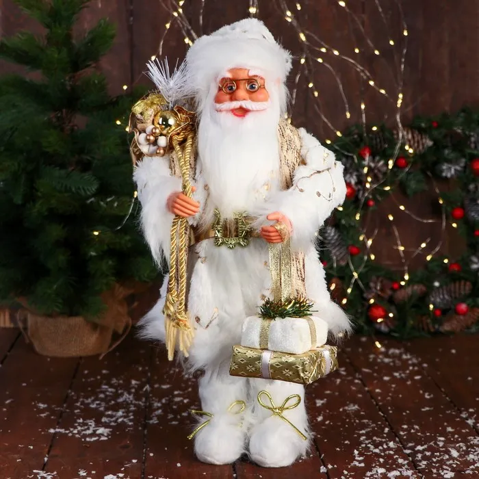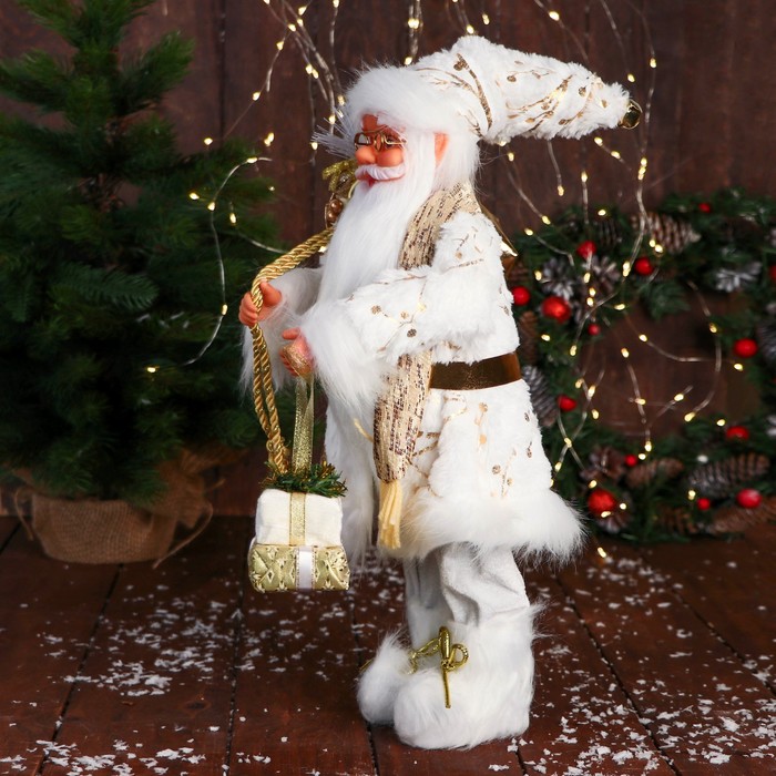 Дед Мороз под ёлку «Зимнее волшебство. С подарками и в ремешке», 50 см, бело-золотой — Характеристики