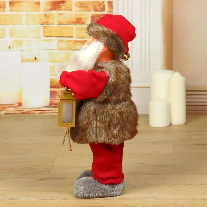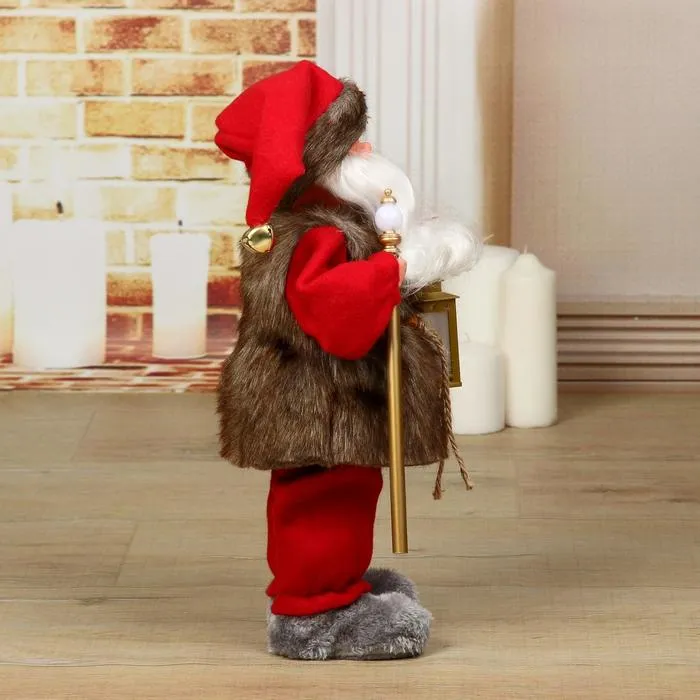 Дед Мороз под ёлку «Зимнее волшебство. Телогрейка, с фонарём» с подсветкой, двигается, 38 см — Характеристики