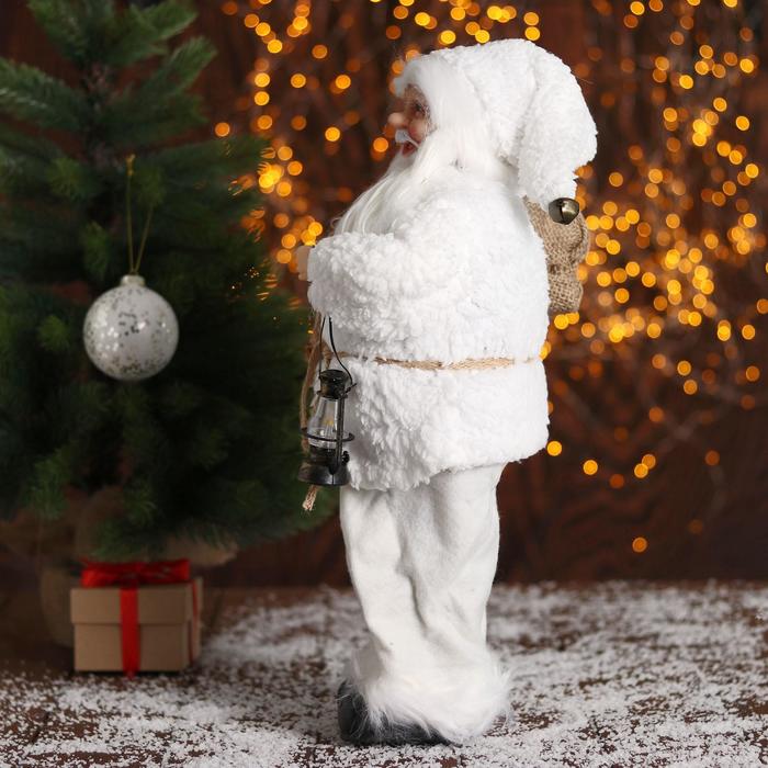 Дед Мороз под ёлку «Зимнее волшебство. В белой шубке, с фонариком», 43 см — Характеристики