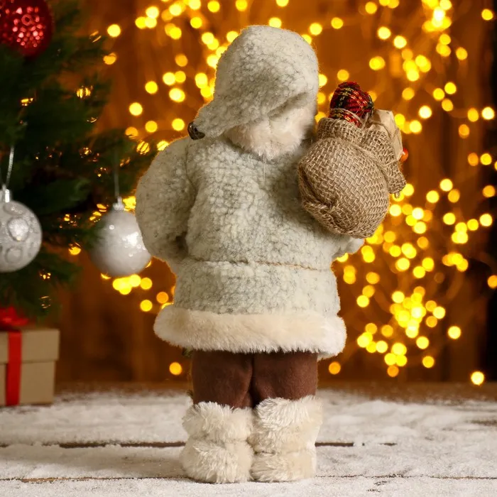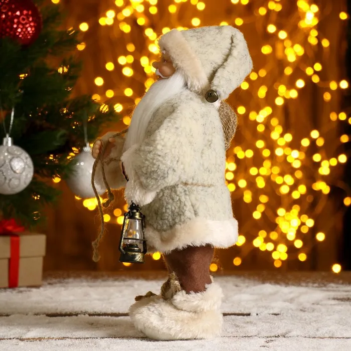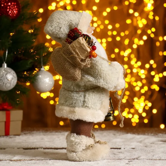 Дед Мороз под ёлку «Зимнее волшебство. В белой шубке, с фонариком и мешком», 30 см — Характеристики