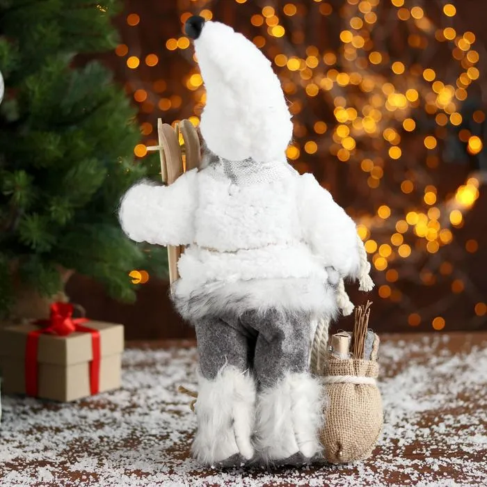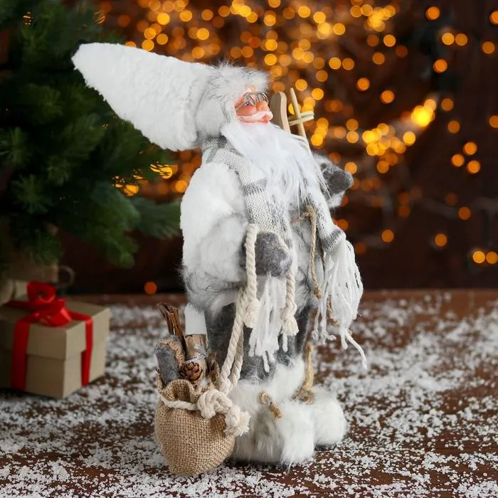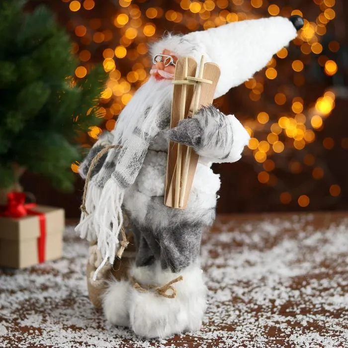 Дед Мороз под ёлку «Зимнее волшебство. В белой шубке с лыжами», 30 см — Характеристики