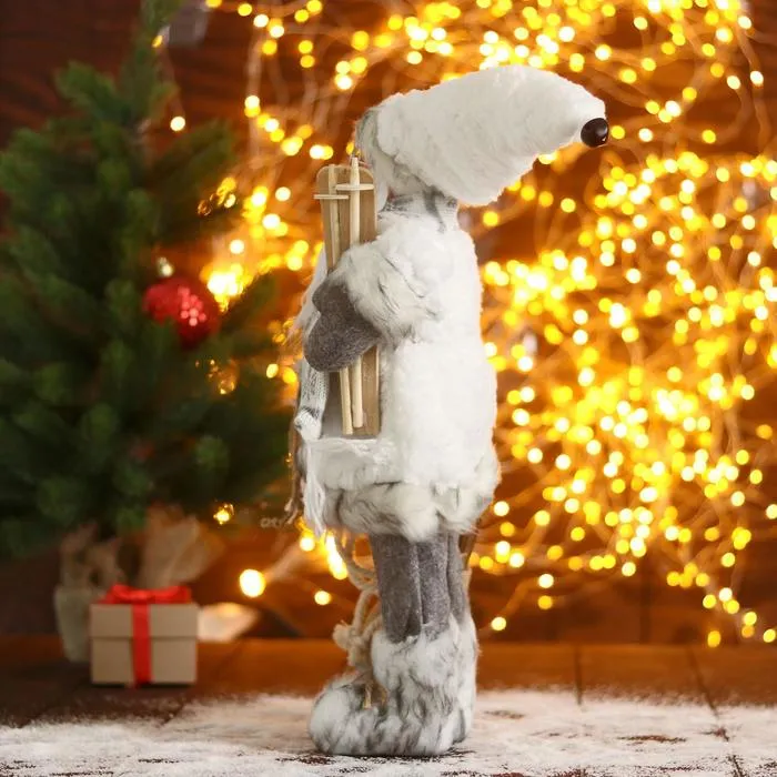 Дед Мороз под ёлку «Зимнее волшебство. В белой шубке с лыжами», 45 см — Характеристики