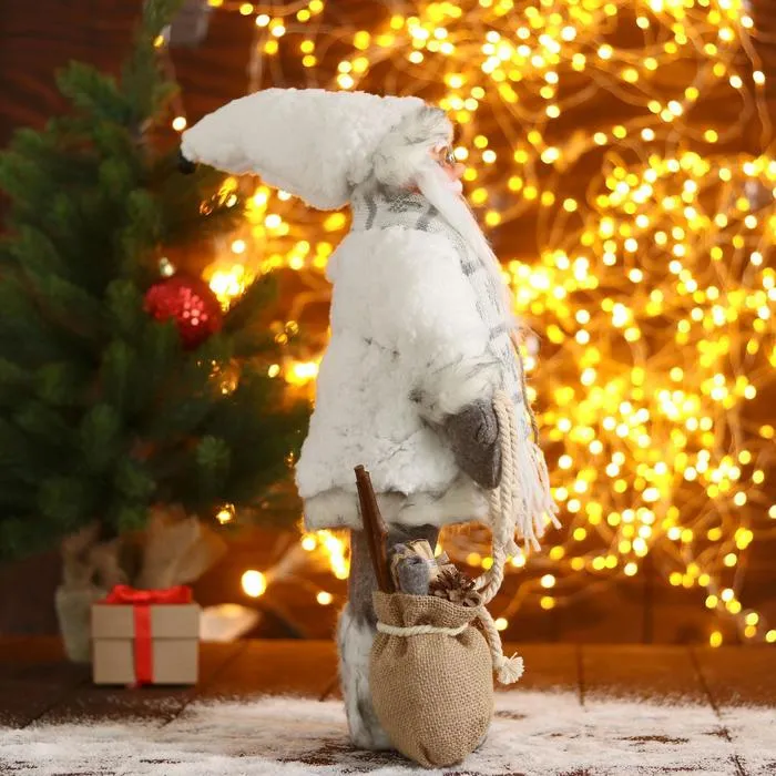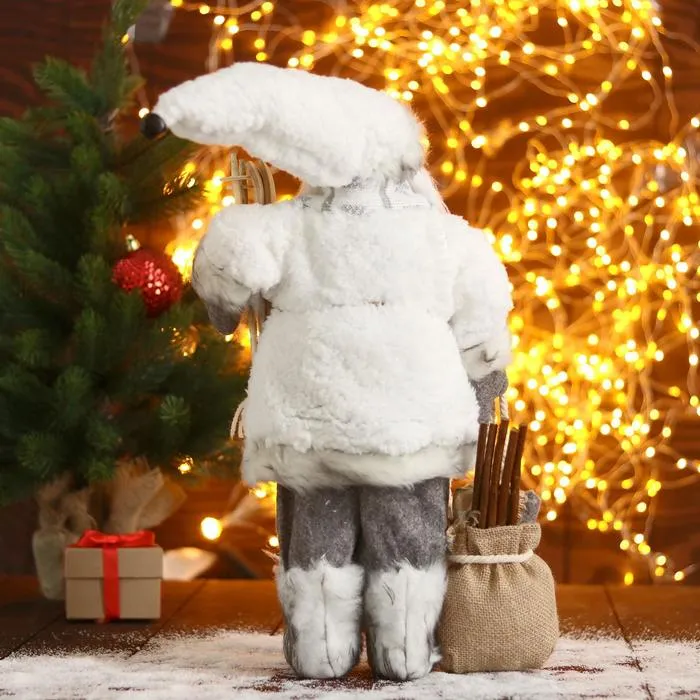 Дед Мороз под ёлку «Зимнее волшебство. В белой шубке с лыжами», 45 см